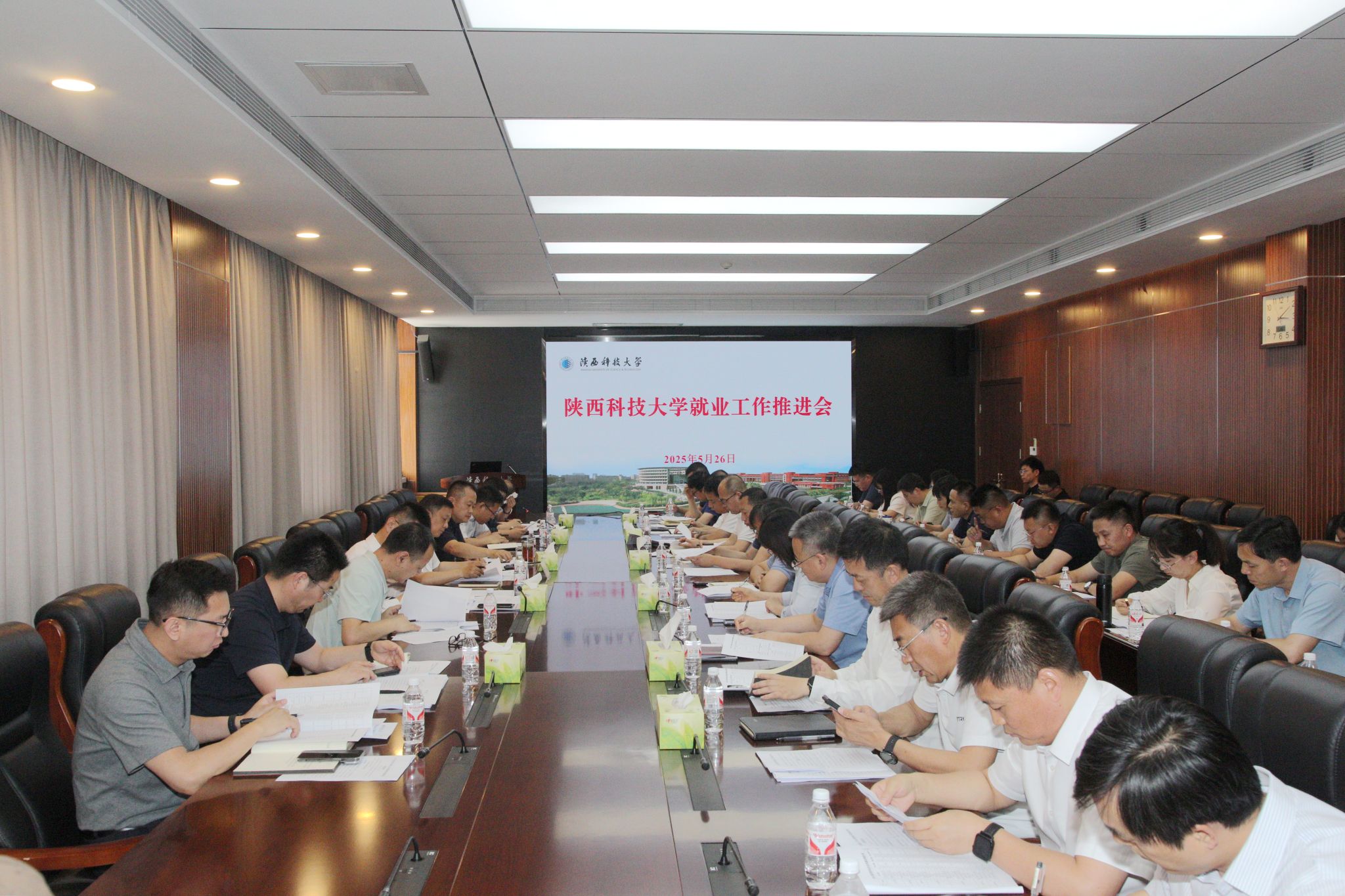 5月26日,陜西科技大學(xué)召開2025屆畢業(yè)生就業(yè)工作推進(jìn)會(huì),研究部署近期就業(yè)工作重點(diǎn)任務(wù)。校長黃劍鋒出席會(huì)議并講話,黨委副書記李學(xué)軍主持會(huì)議并作工作安排。