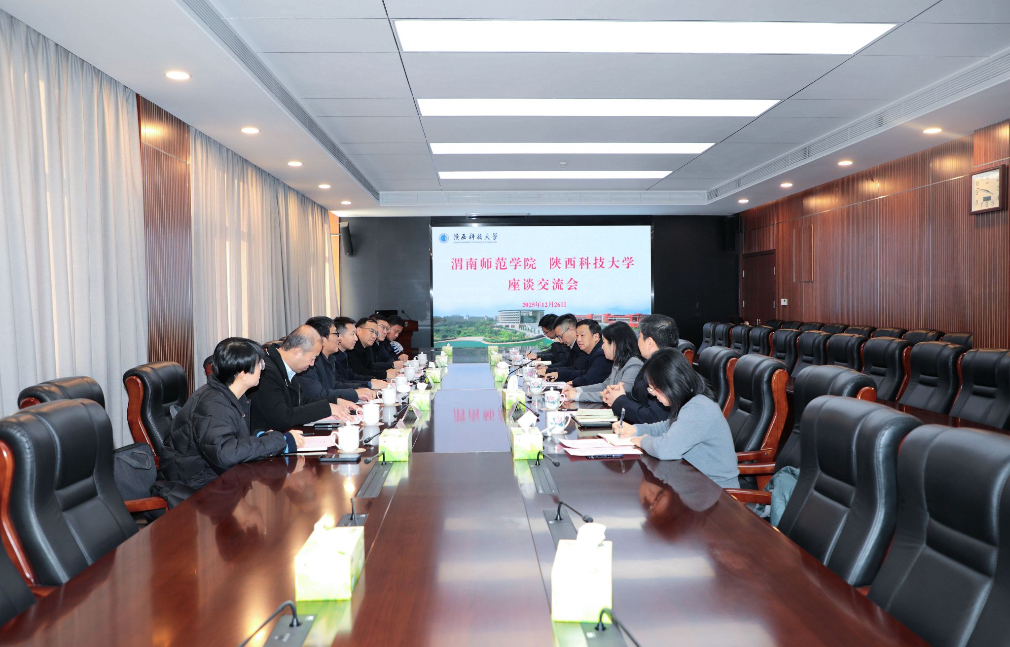 12月26日,渭南師范學(xué)院校長李強(qiáng),副校長曹強(qiáng)、蔣平江一行來陜西科技大學(xué)調(diào)研交流。陜西科技大學(xué)校長黃劍鋒出席會議并致辭,副校長馬力參加會議。副校長費貴強(qiáng)主持會議。