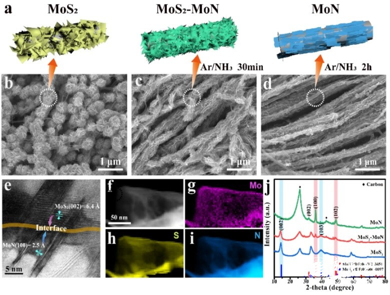 在異質(zhì)結(jié)構(gòu)協(xié)同抑制多硫化物的穿梭,提高鋰硫電池性能方面取得了重要研究進展,發(fā)表題為“Insight into MoS2-MoN Heterostructure to Accelerate Polysulfide Conversion toward High-Energy-Density Lithium-Sulfur Batteries”的研究論文。第一作者為我校王思哲副教授,聯(lián)合通訊作者為宋浩杰和加拿大西安大略大學(xué)孫學(xué)良院士,文章以陜西科技大學(xué)為第一單位發(fā)表在國際頂級期刊Advanced Energy Materials上。
