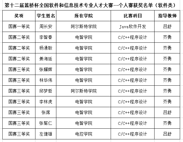 6月5日,第十二屆藍(lán)橋杯全國(guó)軟件和信息技術(shù)專業(yè)人才大賽落下帷幕。我校學(xué)子獲全國(guó)一等獎(jiǎng)1項(xiàng)、二等獎(jiǎng)5項(xiàng)、三等獎(jiǎng)9項(xiàng),獲省級(jí)獎(jiǎng)項(xiàng)57項(xiàng)。