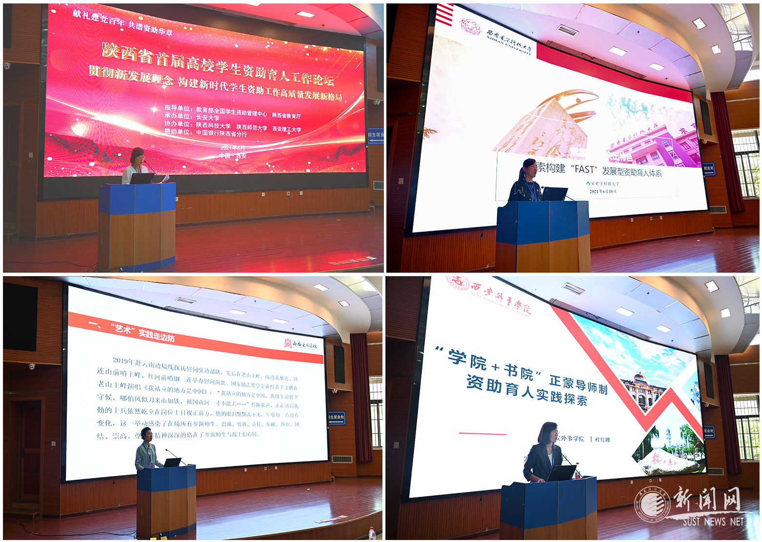 西安電子科技大學(xué)學(xué)生處副處長、資助中心主任盧琳,西安音樂學(xué)院學(xué)工部部長、資助中心主任張津波,西安外事學(xué)院學(xué)工部副部長杜紅娜分別就學(xué)校資助育人的特色做法和經(jīng)驗(yàn)進(jìn)行了分享介紹。