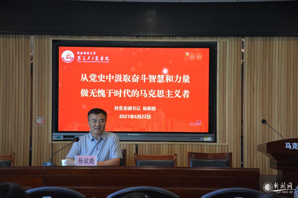 6月22日上午,校黨委副書記楊欲曉以“從黨史中汲取奮斗智慧和力量,做無愧于時(shí)代的馬克思主義者”為題,為我校馬克思主義學(xué)院研究生講授了一堂精彩生動(dòng)的思政課。