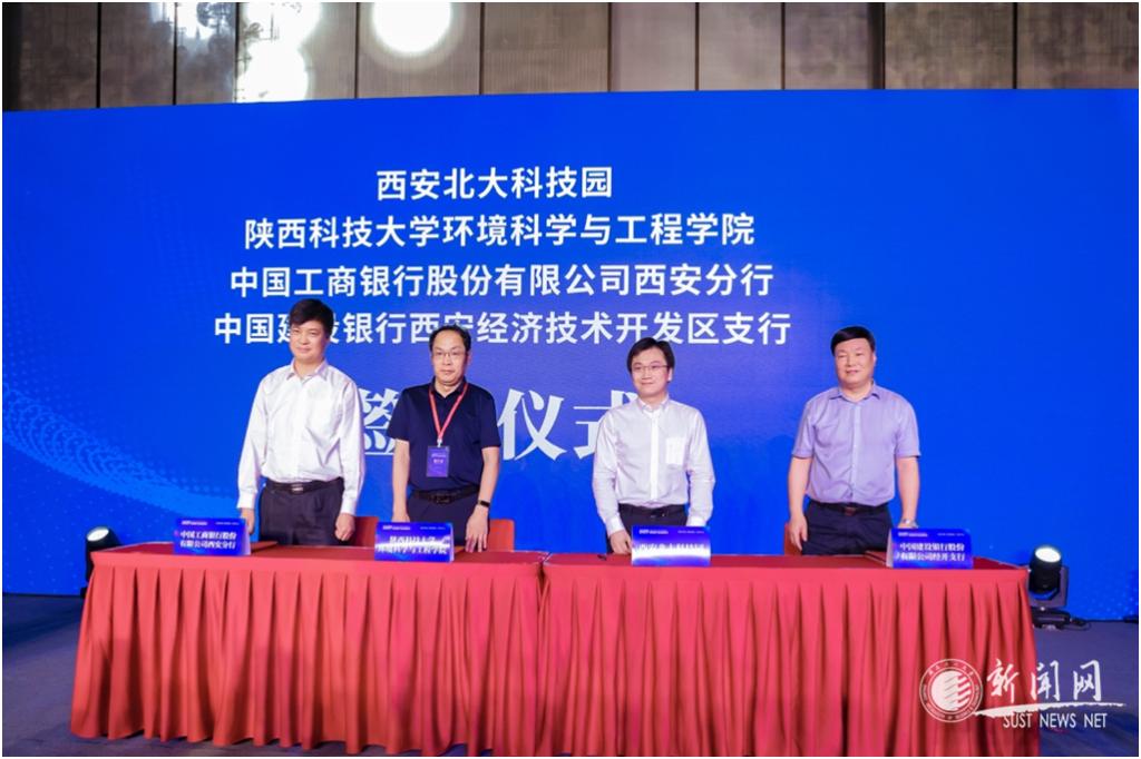 馬宏瑞代表學(xué)院與北大科技園、工商銀行西安分行、建設(shè)銀行西安經(jīng)開支行就促進(jìn)校企科技金融服務(wù)簽署了合作框架協(xié)議,為環(huán)境學(xué)院創(chuàng)新創(chuàng)業(yè)、技術(shù)孵化提供了金融服務(wù)保障。未央?yún)^(qū)委書記楊建強(qiáng)與馬宏瑞等校企代表共同發(fā)布了《未央?yún)^(qū)數(shù)字經(jīng)濟(jì)與“雙碳戰(zhàn)略”融合發(fā)展機(jī)會(huì)清單》,我校大氣污染與控制技術(shù)等7項(xiàng)可轉(zhuǎn)化成果在列。未央?yún)^(qū)人民政府授予郭軍康“未央最美生態(tài)人”榮譽(yù)稱號(hào),勉勵(lì)其為生態(tài)未央建設(shè)譜寫新篇章、凝聚黨建引領(lǐng)生態(tài)文明建設(shè)所作的突出貢獻(xiàn)。
