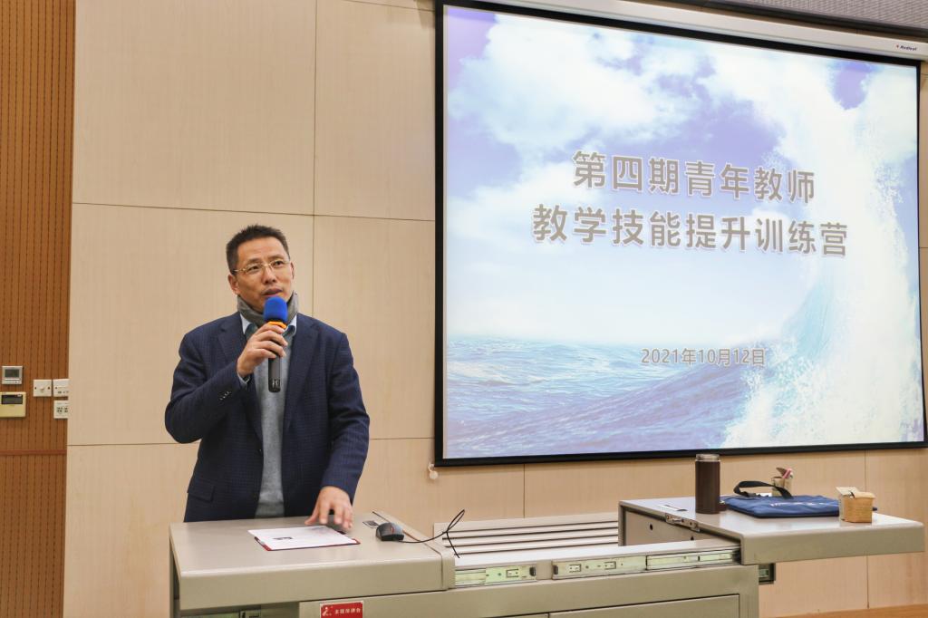教師發(fā)展中心常務副主任徐永建教授在開班儀式上致辭。他強調了教師教學的重要性,指出教學是教師立足的根本。他表示,本期訓練營活動的目的一是為了讓青年教師站穩(wěn)講臺,做一名合格的教師;二是提供一個交流的平臺,通過本次活動使不同學院之間的教師彼此熟悉,交流教學心得,同時在科研上加強合作,為學科交叉提供便利。他希望參訓教師放下顧慮,踴躍交流,展現(xiàn)積極自信的風貌,并將培訓中學到的教學理念、方法帶入到課堂之中,最終使學生受益。