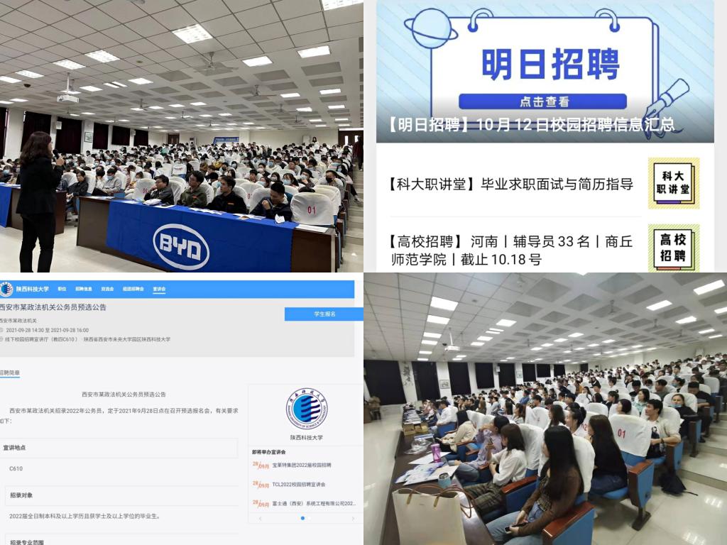突出氛圍營(yíng)造,著力構(gòu)建“宣傳+幫扶”就業(yè)服務(wù)平臺(tái)。加強(qiáng)就業(yè)資訊推送,通過“一網(wǎng)一平臺(tái)”就業(yè)信息服務(wù)平臺(tái),推送包含名企校招、公務(wù)員招錄,事業(yè)單位招考、高校招聘等推文300余篇,為學(xué)生提供高質(zhì)量、多元化就業(yè)選擇。打造“科大職講堂”品牌就業(yè)指導(dǎo)活動(dòng),聯(lián)合專業(yè)機(jī)構(gòu)開展講堂5次,為考研考公學(xué)生提供備考知識(shí)指導(dǎo)、備考資訊推送和備考技能提升。常態(tài)化開展線上線下招聘活動(dòng),自9月20日開放校園招聘以來,累計(jì)舉辦15場(chǎng)線上招聘會(huì),220余場(chǎng)專場(chǎng)招聘會(huì)、地市組團(tuán)招聘會(huì),其中??低?、京東方、舜宇集團(tuán)、比亞迪等企業(yè)招聘現(xiàn)場(chǎng)異?;鸨?。積極關(guān)注就業(yè)困難群體,做好兜底保障,累計(jì)為399名家庭經(jīng)濟(jì)困難畢業(yè)生申請(qǐng)求職創(chuàng)業(yè)補(bǔ)貼。