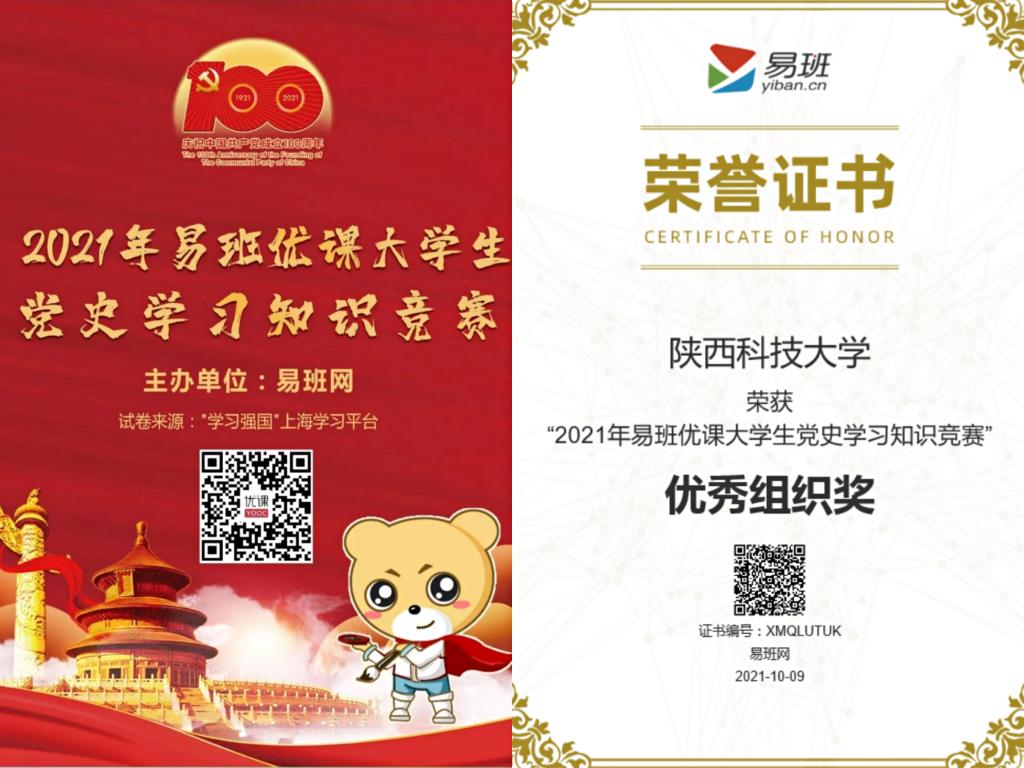 近日,由“易班網(wǎng)”主辦,在“易班優(yōu)課”平臺線上開展的“2021年易班優(yōu)課大學生黨史學習知識競賽”活動落下帷幕,我校榮獲“2021年易班優(yōu)課大學生黨史學習知識競賽”百強高校優(yōu)秀組織獎。本次競賽所用試卷由“學習強國”上海學習平臺提供,全國848所高校66.7萬學生參加課群學習,54.6萬學生參加知識競賽。