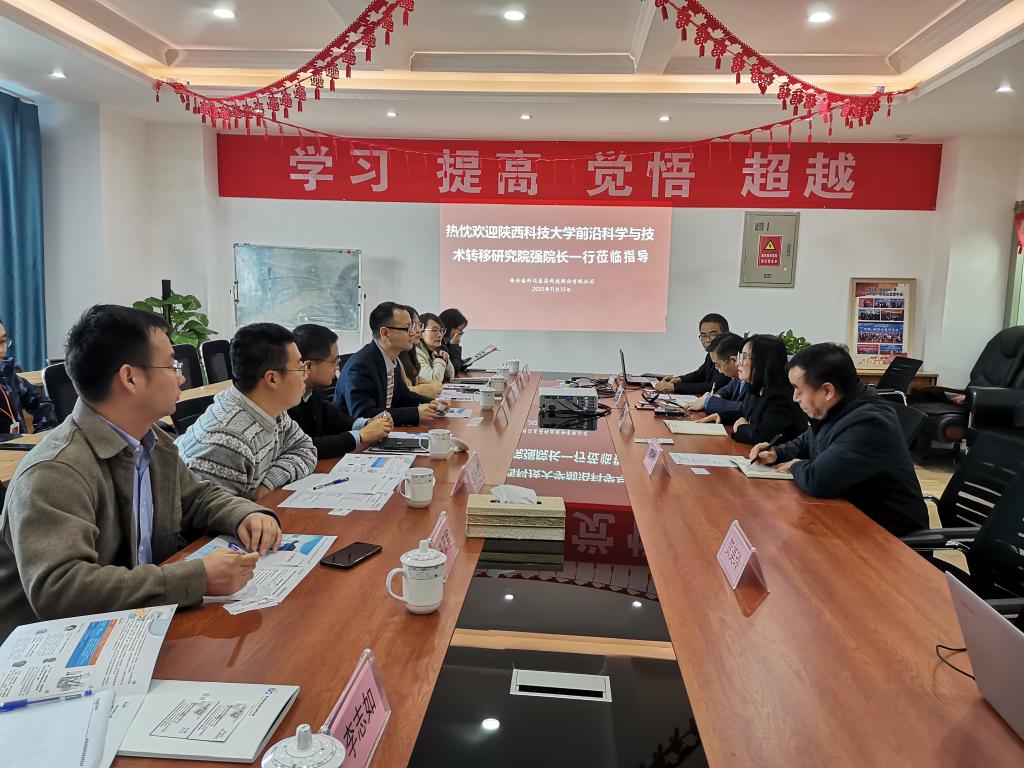 為進(jìn)一步促進(jìn)產(chǎn)學(xué)研開放合作,推進(jìn)我??萍汲晒D(zhuǎn)移轉(zhuǎn)化,根據(jù)《中共陜西科技大學(xué)委員會關(guān)于進(jìn)一步擴(kuò)大對外開放交流努力譜寫學(xué)校新時代追趕超越新篇章的實施意見》文件精神和125開放促進(jìn)計劃要求,經(jīng)過前期充分溝通,11月15日下午,前沿院組織我校專家教授赴西安市高新區(qū)西安聯(lián)創(chuàng)生物醫(yī)藥孵化器、西安力邦醫(yī)藥研究院及西安泰科邁醫(yī)藥科技股份有限公司對接科技成果轉(zhuǎn)化及校企合作事宜。西安聯(lián)創(chuàng)生物醫(yī)藥孵化器總經(jīng)理劉海鵬,西安泰科邁醫(yī)藥科技股份有限公司董事長唐永紅,副總經(jīng)理常明輝、周培育,技術(shù)總監(jiān)齊華鋒,科技主管賀美玲參加會議,我校前沿院常務(wù)副院長強(qiáng)濤濤及相關(guān)專家教授團(tuán)隊參加了此次考察對接會。