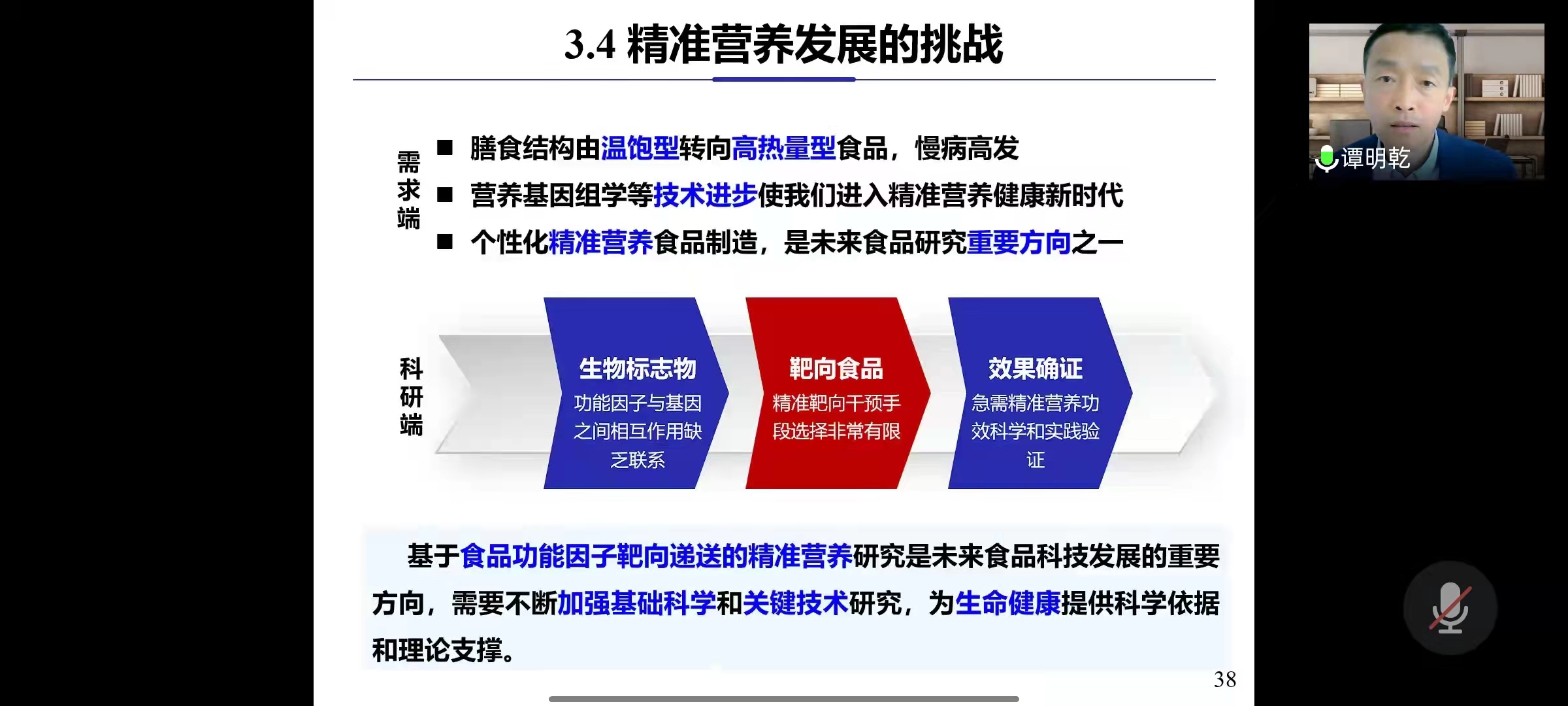 譚明乾教授從我國人民的膳食結(jié)構(gòu)與營養(yǎng)需求切入,介紹了“精準營養(yǎng)”的內(nèi)涵,闡述了現(xiàn)階段精準營養(yǎng)研究手段與干預(yù)手段,肯定了利用食品科技保障人民營養(yǎng)健康課題的必要性。他通過闡述食品功能因子與載體的相互作用及穩(wěn)態(tài)化機制、構(gòu)建食品功能因子可視化示蹤方法,闡明了擔(dān)載的功能因子進入機體后的吸收及釋放規(guī)律,初步揭示了部分食品功能因子的原集和轉(zhuǎn)運機制。他還介紹了精準營養(yǎng)產(chǎn)業(yè)發(fā)展動態(tài)及其發(fā)展所面臨的挑戰(zhàn)。
