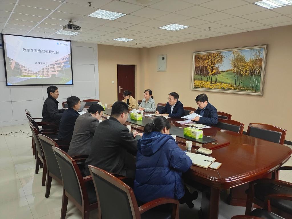 藺小林就數學學科的發(fā)展現狀、建設成效、博士點申報存在的問題及擬定的解決措施進行了匯報。結合數學學院的匯報內容,學科辦主任郭改慧、副主任劉和林、主任助理銀召霞給出了具體的指導。
