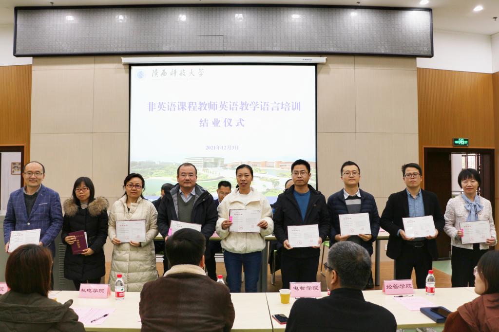 在愉快的氣氛中,與會(huì)領(lǐng)導(dǎo)向培訓(xùn)合格的教師頒發(fā)了結(jié)業(yè)證書。至此,我校非英語(yǔ)課程教師英語(yǔ)教學(xué)語(yǔ)言培訓(xùn)工作圓滿落幕。