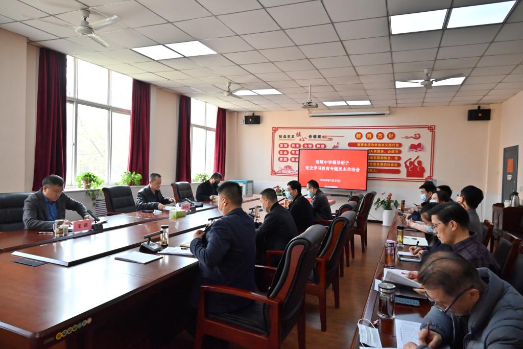 根據(jù)校黨委的統(tǒng)一安排,3月24日下午,附屬中學(xué)召開領(lǐng)導(dǎo)班子黨史學(xué)習(xí)教育專題民主生活會(huì),副校長李學(xué)軍到會(huì)指導(dǎo),校黨史學(xué)習(xí)教育第二巡回指導(dǎo)組副組長趙偉鋒列席會(huì)議。附屬中學(xué)班子成員參加會(huì)議,教工黨支部書記、所屬各部門主要負(fù)責(zé)人列席會(huì)議。會(huì)議由附屬中學(xué)黨委書記、校長王琪主持。