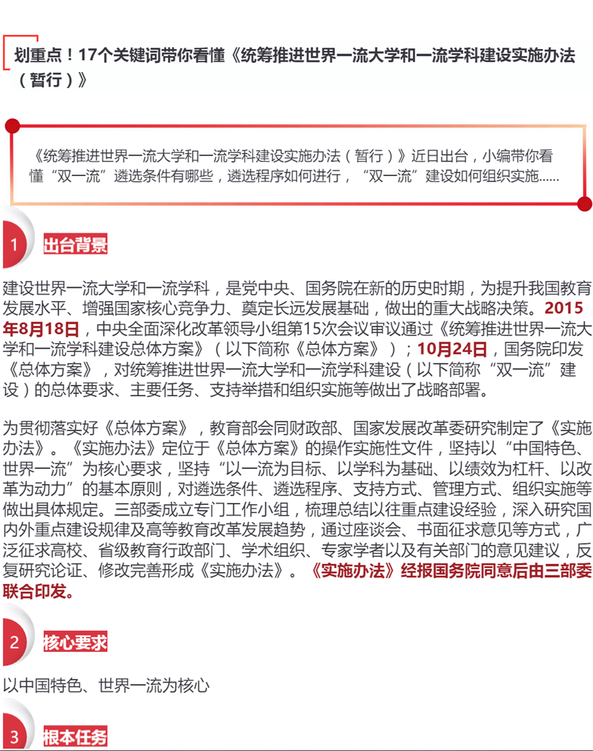 【政策速遞】17個關(guān)鍵詞讀懂“雙一流”建設(shè)實施辦法