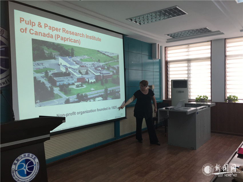 米歇爾·瑞米德作了題為“加拿大林產(chǎn)品創(chuàng)新研究院的簡介和研究動態(tài)”的學術報告。她首先簡單介紹了加拿大紙漿和造紙研究所及加拿大森林產(chǎn)品創(chuàng)新工業(yè)研究院。緊接著介紹其研究院從森林到市場的整個鏈、其獨特靈活的商業(yè)模式、研究院上游部門等,當米歇爾·瑞米德講到木材建造多層建筑及道路橋梁等的新的解決方案時,引起全體師生的極大興趣。隨后詳細講解纖維素納米晶體、纖維素纖絲和木素產(chǎn)品的工業(yè)應用以及生物質(zhì)品和環(huán)境服務的關系等,讓我們看到了紙漿和造紙未來更大的發(fā)展和應用前景。