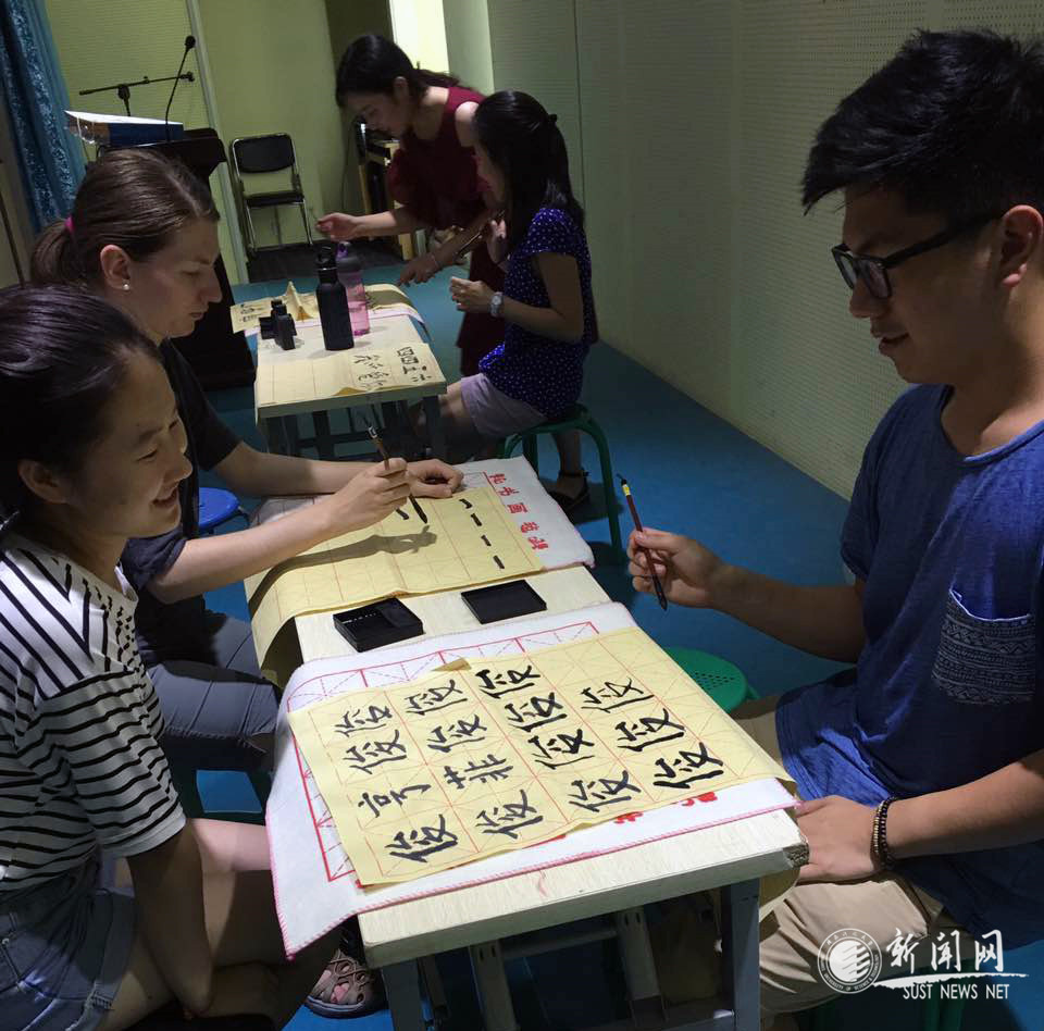 此次夏令營(yíng)從7月19日開(kāi)始,為期23天。期間,中方18名學(xué)生與加方18名學(xué)生以一中一加“結(jié)對(duì)子”的形式共同學(xué)習(xí)和生活。中加雙方領(lǐng)隊(duì)老師密切合作,精心設(shè)計(jì)了豐富多彩的夏令營(yíng)課程和文化體驗(yàn)活動(dòng)。每天早晨,中加學(xué)生分別選取與各自文化相關(guān)的一個(gè)話(huà)題進(jìn)行講解與展示,中方學(xué)生還分成不同小組講授數(shù)字、稱(chēng)呼等簡(jiǎn)單的漢語(yǔ)課程。下午,中加學(xué)生以小組為單位,教授自己擅長(zhǎng)的一項(xiàng)才藝,如舞蹈、歌唱、樂(lè)器、書(shū)法等。除日常文化課程外,還穿插了形式多樣的文化體驗(yàn)活動(dòng)。組織學(xué)生參觀了我校校史館、輕工科學(xué)與工程學(xué)院造紙印刷史展館、皮革特色展館、設(shè)計(jì)與藝術(shù)學(xué)院特色展廳;外出參觀了兵馬俑、西安鐘樓,品嘗回民街美食,游覽翠華山,體驗(yàn)農(nóng)家樂(lè);在校內(nèi)舉辦了具有中西文化特色的生日晚會(huì)、農(nóng)歷新年晚會(huì)、圣誕節(jié)晚會(huì)、中加夏令營(yíng)標(biāo)志設(shè)計(jì)競(jìng)賽、中加夏令營(yíng)話(huà)劇表演競(jìng)賽,觀看了具有中西方文化特色的電影等多項(xiàng)主題活動(dòng)。