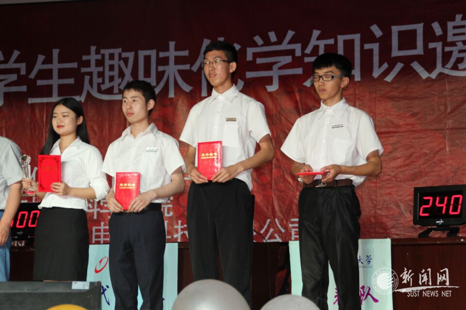 此次大賽由陜西省化學(xué)會主辦,西北大學(xué)化學(xué)與材料科學(xué)學(xué)院承辦。西北大學(xué)、西安科技大學(xué)、西安石油大學(xué)、西安建筑科技大學(xué)、陜西師范大學(xué)和我校進(jìn)入決賽。競賽共設(shè)置了五大題型:必答題、快速競答題、搶答題、陷阱題以及風(fēng)險題,題型多為生活中有關(guān)的化學(xué)知識,旨在讓學(xué)生更好的了解化學(xué)在生活中的運(yùn)用。