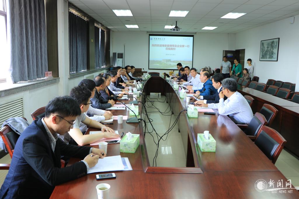 4月28日上午,江蘇省海安縣組織部、科技局等單位領(lǐng)導(dǎo)及企業(yè)家一行10余人來(lái)我校進(jìn)行考察和產(chǎn)學(xué)研合作交流。副校長(zhǎng)李志健,科技處、機(jī)電學(xué)院、材料學(xué)院、 輕工學(xué)院及食品學(xué)院的相關(guān)負(fù)責(zé)人和教師參加了會(huì)議。會(huì)議由科技處處長(zhǎng)楊軍主持。