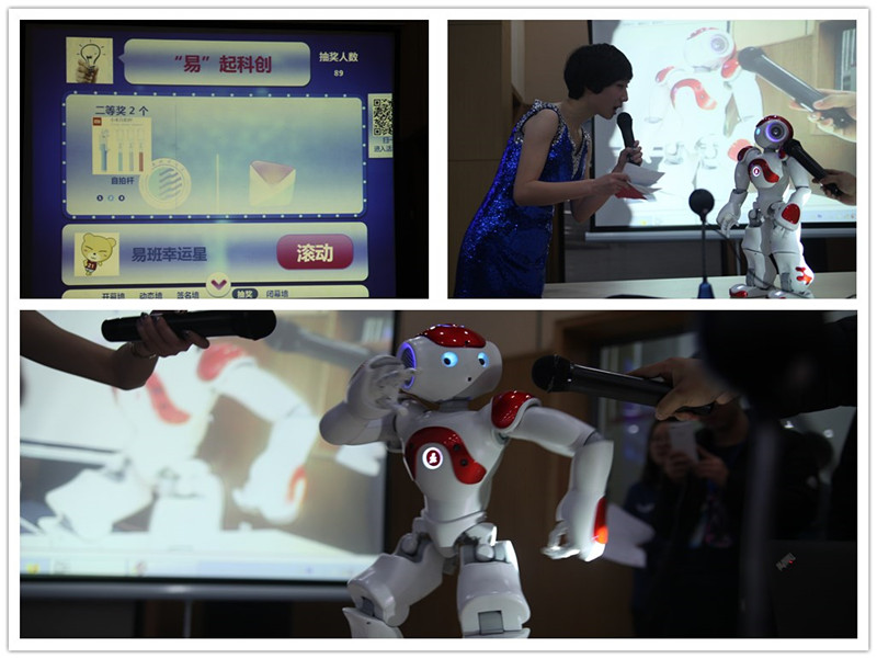 本次比賽首次以“易班”為網(wǎng)絡互動平臺,通過全新的抽獎環(huán)節(jié),調動了現(xiàn)場觀眾的積極性和參與感。決賽現(xiàn)場更現(xiàn)神秘嘉賓——學院實驗室研究項目“NAO機器人”,它為現(xiàn)場觀眾獻上兩支動感舞蹈,并通過與主持人的靈活對話,讓在場同學領略到了科技創(chuàng)新的魅力,將現(xiàn)場氣氛推向了高潮。