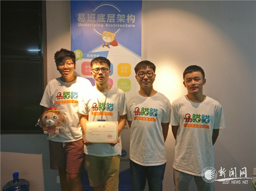 8月21日至25日,第一屆全國高校易班開發(fā)者大會在上海舉行。由文理學(xué)院張誠,電氣工程與信息學(xué)院高宇挺、王景鋒,職業(yè)教育示范學(xué)院韓興達等4名學(xué)生組成的我校開發(fā)團隊在兩天的激烈比拼中經(jīng)過創(chuàng)意討論、應(yīng)用開發(fā)、軟件調(diào)試等環(huán)節(jié),完成了“校園綜合服務(wù)平臺”應(yīng)用,后經(jīng)產(chǎn)品路演,贏得了評委一致好評,并作為4所陜西參賽高校的唯一獲獎代表,最終榮獲三等獎。
