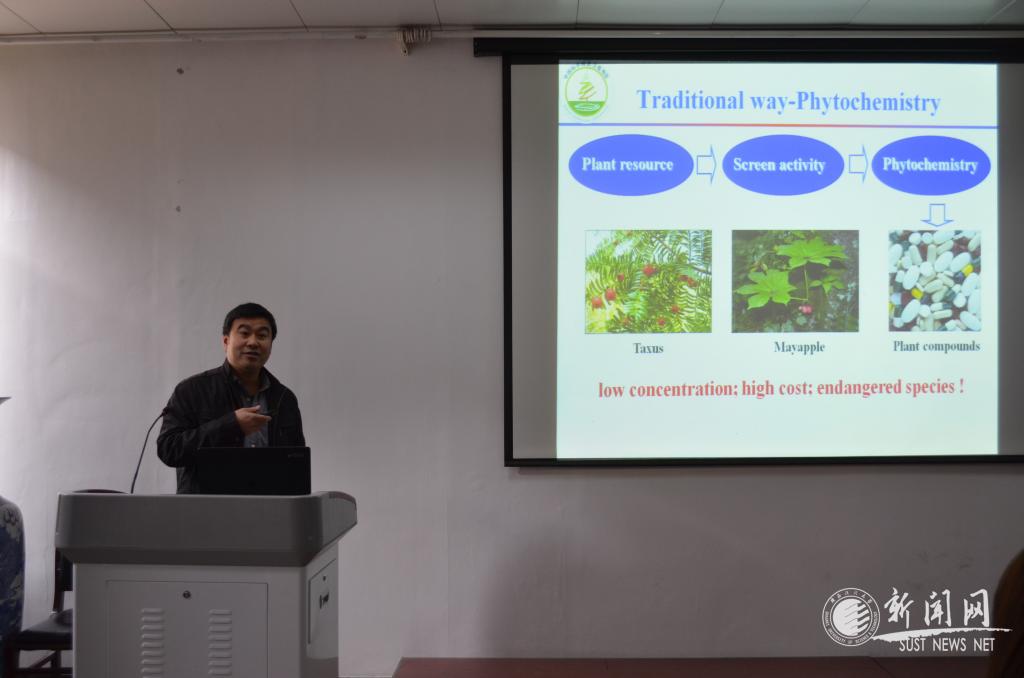 應(yīng)食品與生物工程學(xué)院邀請(qǐng),武漢植物園天然藥物生物合成學(xué)研究組首席研究員章焰生博士于3月31日來我校做學(xué)術(shù)交流,在食品學(xué)院會(huì)議室做了題為“植物源天然產(chǎn)物的合成生物學(xué)-功能基因挖掘”的學(xué)術(shù)報(bào)告。院長陳雪峰教授主持報(bào)告會(huì),學(xué)院相關(guān)專業(yè)的教師和研究生參加了本次學(xué)術(shù)報(bào)告會(huì)。