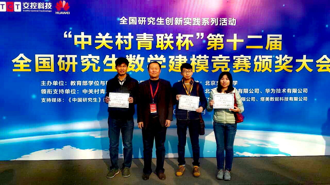 第十二屆“中關(guān)村青聯(lián)杯”全國研究生數(shù)學(xué)建模競賽于12月12日在北京交通大學(xué)揭曉結(jié)果,我校7支參賽隊伍全部獲獎,其中5支分別斬獲一等獎1項、二等獎3項、三等獎1項,2支隊伍獲成功參賽獎。這是繼2009年以來,我校第三次榮獲全國研究生數(shù)學(xué)建模競賽一等獎。我校的獲獎等級和獲獎比例一直位居陜西省參賽單位前茅。