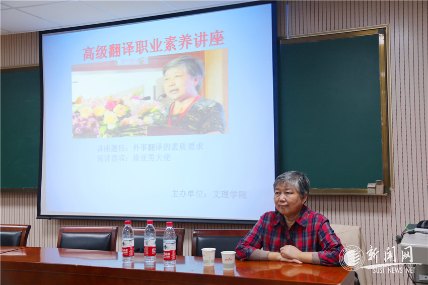 10月14日下午,應(yīng)研究生院、文理學(xué)院邀請(qǐng),外交部前翻譯室主任徐亞男大使來(lái)我校作了題為“外事翻譯的素質(zhì)要求”的學(xué)術(shù)報(bào)告。報(bào)告會(huì)由文理學(xué)院院長(zhǎng)藺小林教授主持。文理學(xué)院外語(yǔ)系教師、翻譯碩士研究生及英語(yǔ)專業(yè)本科生參加,西安工業(yè)大學(xué)有關(guān)老師代表也專程聆聽(tīng)了報(bào)告。