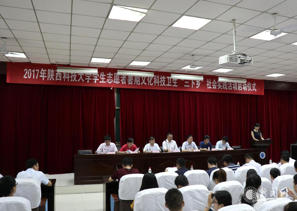 校團(tuán)委書記鄭東宣讀了《關(guān)于確定2017年陜西科技大學(xué)大學(xué)生志愿者暑期文化科技衛(wèi)生“三下鄉(xiāng)”社會(huì)實(shí)踐活動(dòng)校級(jí)立項(xiàng)團(tuán)隊(duì)名單的決定》。隨后,與會(huì)領(lǐng)導(dǎo)為我?!叭锣l(xiāng)”社會(huì)實(shí)踐代表團(tuán)隊(duì)授旗并合影留念。至此,以“青春喜迎十九大,砥礪奮進(jìn)新征程”為主題的我校2017年大學(xué)生志愿者暑期文化科技衛(wèi)生“三下鄉(xiāng)”社會(huì)實(shí)踐活動(dòng)正式啟動(dòng)。