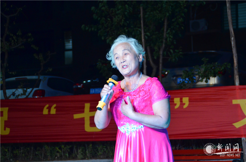 晚會(huì)節(jié)目豐富多彩,有合唱、獨(dú)唱、器樂(lè)獨(dú)奏、舞蹈,詩(shī)朗誦等。73歲高齡的晁哲老師,滿頭銀發(fā)一身紅裝,一曲《黨啊,親愛(ài)的媽媽》洪亮的歌聲引發(fā)全場(chǎng)共鳴。丁寶玲、朱志華演奏的民族器樂(lè)葫蘆絲,悅耳動(dòng)聽,悠揚(yáng)自然,仿佛引領(lǐng)大家到了云霞霧繞,煙雨濛濛的苗家山寨。一曲曲深情的旋律,在耳畔飄縈;一首首嘹亮的歌聲,在沁園小區(qū)回蕩;一句句誠(chéng)摯的話語(yǔ),在觀眾心中澎湃。