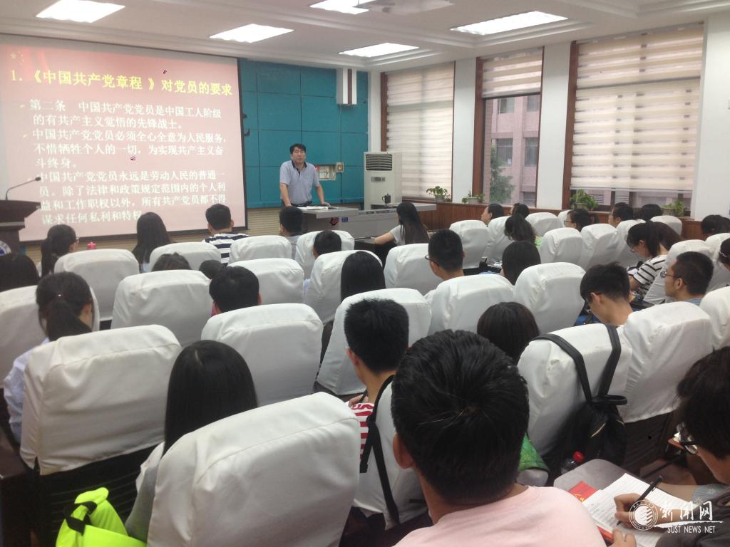 李廣明從加入中國共產(chǎn)黨的條件要求談起,結(jié)合黨章的具體規(guī)定,逐步分析出一個(gè)青年個(gè)體達(dá)到基本要求的過程正是向組織個(gè)體轉(zhuǎn)變的過程,是一個(gè)思想認(rèn)識(shí)和行動(dòng)行為不斷深入、成熟的過程。他重點(diǎn)分析了大學(xué)生如何才能成為一名合格的黨員,結(jié)合學(xué)生面臨的學(xué)業(yè)、工作和生活,結(jié)合學(xué)院黨組織的要求、培養(yǎng)和塑造,結(jié)合社會(huì)的需求、形勢(shì)和挑戰(zhàn),深入淺出道出成長(zhǎng)為一名合格黨員所要經(jīng)歷的歷練和前進(jìn)的方向,他特別強(qiáng)調(diào)黨員必須加強(qiáng)理論學(xué)習(xí),以“兩學(xué)一做”學(xué)習(xí)教育為契機(jī),通過深入學(xué)習(xí)黨章黨規(guī)和習(xí)近平總書記系列講話,領(lǐng)悟其中的新觀點(diǎn)、新論斷、新要求,做到學(xué)而信、學(xué)而用、學(xué)而行,從而提高理論水平,堅(jiān)守信仰信念,增強(qiáng)規(guī)矩意識(shí)。他要求學(xué)生黨員在紀(jì)律面前嚴(yán)格遵守,在困難面前要挺身而出,在學(xué)習(xí)工作中發(fā)揮榜樣作用,立足學(xué)生黨員這一身份找到自己的“崗位”,服務(wù)大家。
