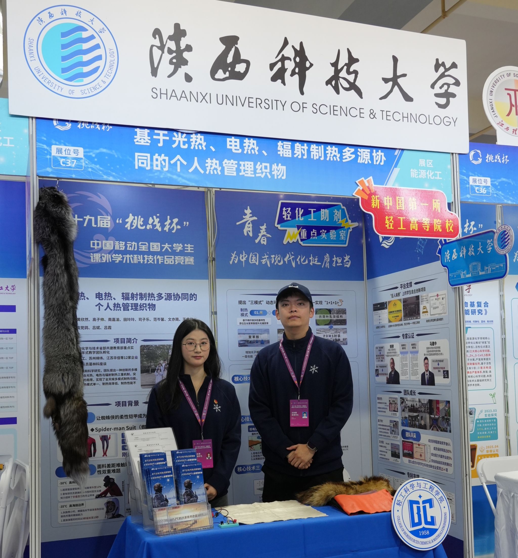 自我校2024年12月啟動第十七屆“復(fù)興杯”大學(xué)生科技創(chuàng)新系列賽事以來,校團(tuán)委精心組織、周密部署,通過專題培訓(xùn)、廣泛宣傳、積極動員,吸引了我校碩博生、本科生共計1200余人參與。經(jīng)過校院選拔、專家評審、答辯演練共推薦15個優(yōu)秀項目參加省賽,2個項目進(jìn)入全國總決賽。備賽期間,校團(tuán)委通過舉辦科創(chuàng)訓(xùn)練營,為學(xué)生團(tuán)隊提供全方位的資源支持和專業(yè)指導(dǎo),助力項目迭代升級,以高質(zhì)量高標(biāo)準(zhǔn)的水平呈現(xiàn)。最終來自輕工科學(xué)與工程學(xué)院推報的《基于光熱、電熱、輻射制熱多源協(xié)同的個人熱管理織物》獲得國家二等獎,材料科學(xué)與工程學(xué)院推報的《電網(wǎng)"清道夫"--基于仿生理論的新型生物質(zhì)基光熱防冰涂料》獲得國家三等獎。