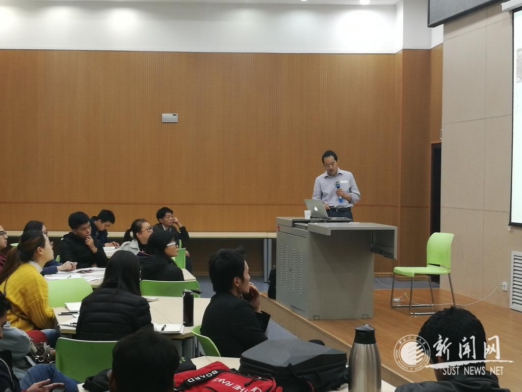 西山義春教授為學院師生做了纖維素相關(guān)領(lǐng)域的系列學術(shù)報告,分別為“From Molecular Interactions to Material Properties of Cellulose”,“Simple Tools to Analyze Crystal Structures”和“Mutiscale-structure of Plant Cellwalls-biosynthesis to Material”。從纖維素材料的微觀結(jié)構(gòu)分析講起,介紹了羥甲基的構(gòu)象、可逆的晶體轉(zhuǎn)變、扭轉(zhuǎn)熵值、氫鍵鍵能等方面;隨后,進一步講述了運用X射線衍射技術(shù)和計算機模擬結(jié)合等簡單的工具和方法研究纖維素分子的晶體結(jié)構(gòu),又從植物細胞壁的多尺度結(jié)構(gòu)、細胞結(jié)構(gòu)的多樣性、不同植物細胞的差異性講述了生物合成材料與造紙業(yè)的關(guān)系。報告中清晰的研究思路和嚴謹?shù)臄?shù)據(jù)分析拓寬了學生的知識與眼界。之后他又針對一些細節(jié)問題與在場師生進行了熱烈的討論。
