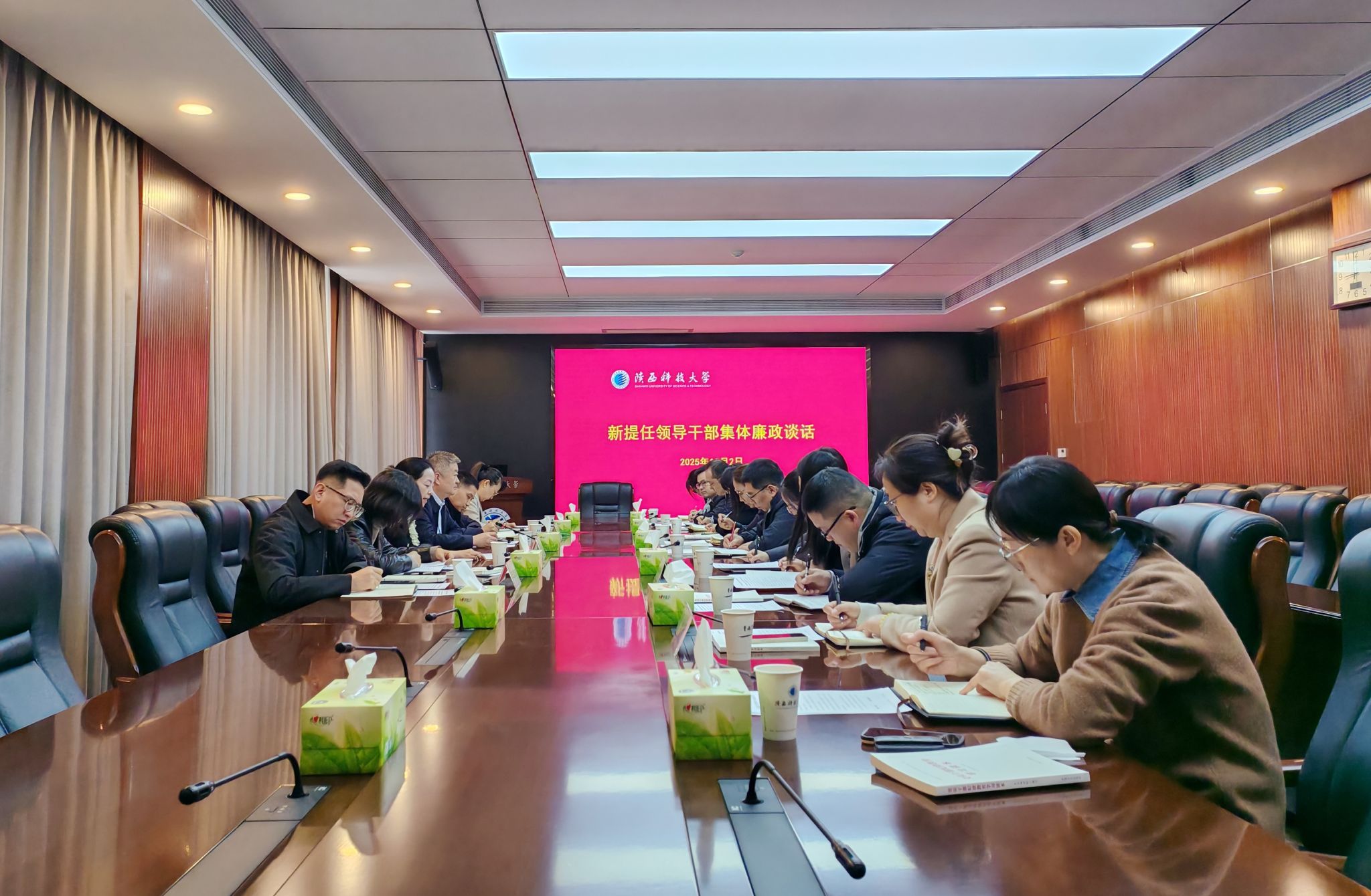 會上組織簽定了《陜西科技大學新提任處級干部廉政承諾書》,向新提任處級干部贈送了《黨員干部紀律教育學習讀本》。