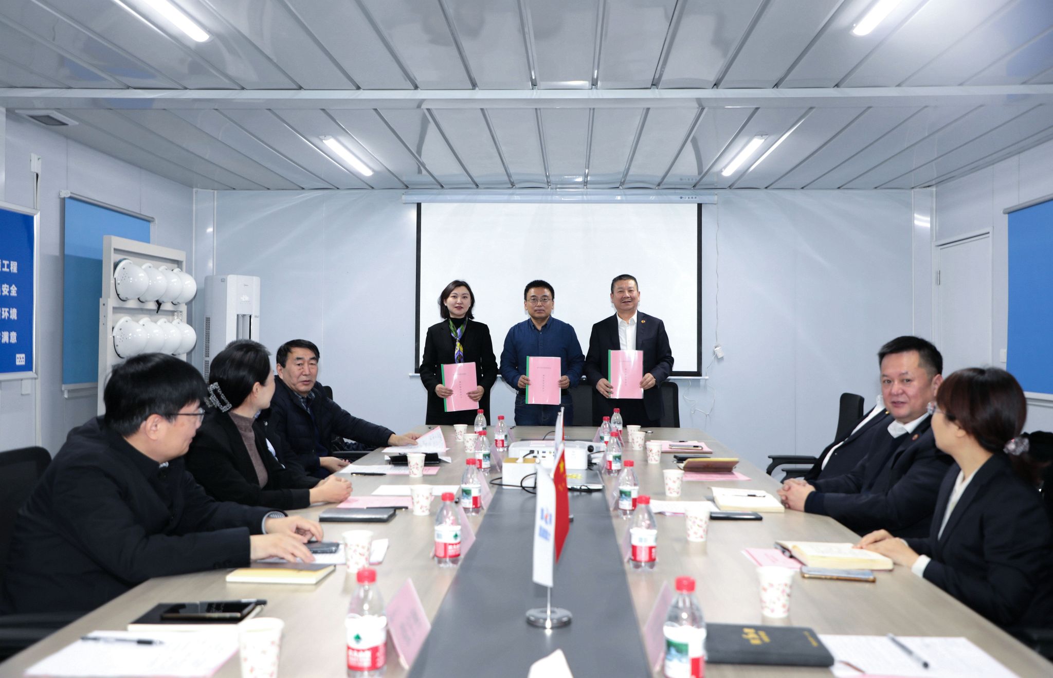 會(huì)議最后,學(xué)校與陜建七公司、陜西省古都工程監(jiān)理公司三方代表共同簽署《基建廉潔建設(shè)承諾書》。