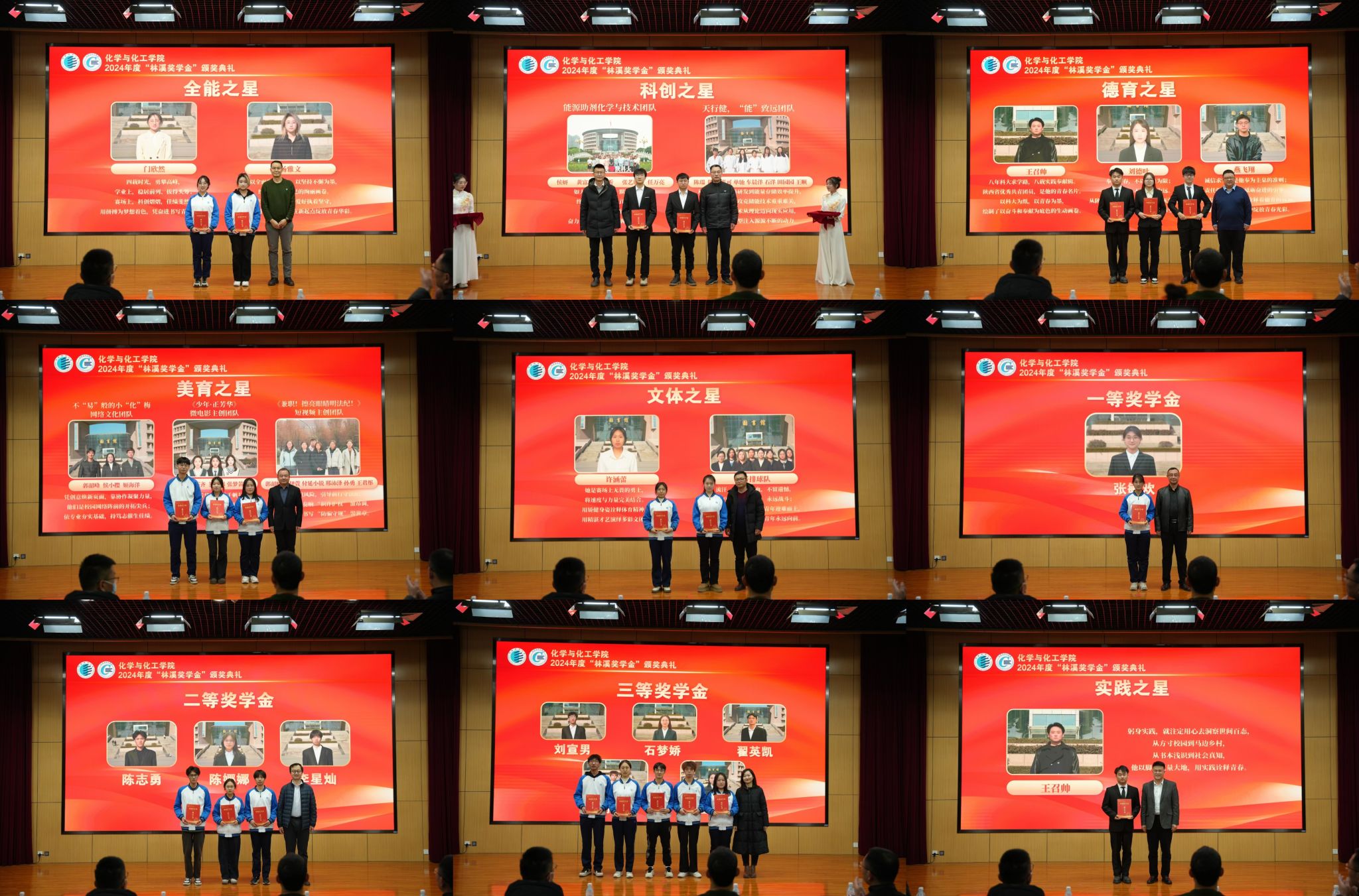 大會(huì)表彰了學(xué)院2024年度在德、智、體、美、勞等領(lǐng)域表現(xiàn)突出的16名先進(jìn)個(gè)人和10個(gè)先進(jìn)團(tuán)隊(duì),設(shè)立全能之星、德育之星、科創(chuàng)之星、文體之星、美育之星、實(shí)踐之星以及化學(xué)拔尖基地班獎(jiǎng)學(xué)金等共計(jì)七類(lèi)獎(jiǎng)項(xiàng),鼓勵(lì)和促進(jìn)化工學(xué)子德、智、體、美、勞全面發(fā)展。與會(huì)領(lǐng)導(dǎo)嘉賓為獲獎(jiǎng)學(xué)生頒發(fā)了榮證書(shū),獲獎(jiǎng)學(xué)生代表門(mén)欣然發(fā)言。