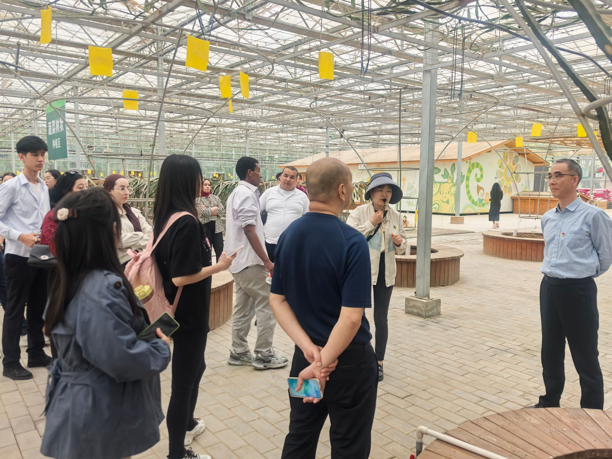 最后,師生們來到灃東農(nóng)博園。在園區(qū)內(nèi),師生們觀摩了各類珍稀植物,學習了無土栽培等現(xiàn)代農(nóng)業(yè)技術(shù),對中國現(xiàn)代農(nóng)業(yè)的先進種植模式與生態(tài)發(fā)展理念有了全面認知。