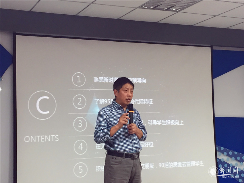 王少浪從輔導(dǎo)員自身的職業(yè)生涯規(guī)劃特點及專業(yè)化、職業(yè)化發(fā)展路徑著手,結(jié)合新時期輔導(dǎo)員在大學(xué)生職業(yè)生涯規(guī)劃教育中的角色定位逐層剖析。他從熟悉新時期國家政策導(dǎo)向;了解95后大學(xué)生的代際特征;全程參與學(xué)生生涯規(guī)劃;在大學(xué)生雙創(chuàng)過程中把握定位;積極學(xué)習(xí),與學(xué)生教學(xué)相長五個方面進了歸納總結(jié)。報告中,王少浪運用辯證思維,為新時期的輔導(dǎo)員開展生涯規(guī)劃教育提供了嶄新視角,對輔導(dǎo)員做好大學(xué)生職業(yè)生涯規(guī)劃教育、提升就業(yè)能力進行了有效啟發(fā)。