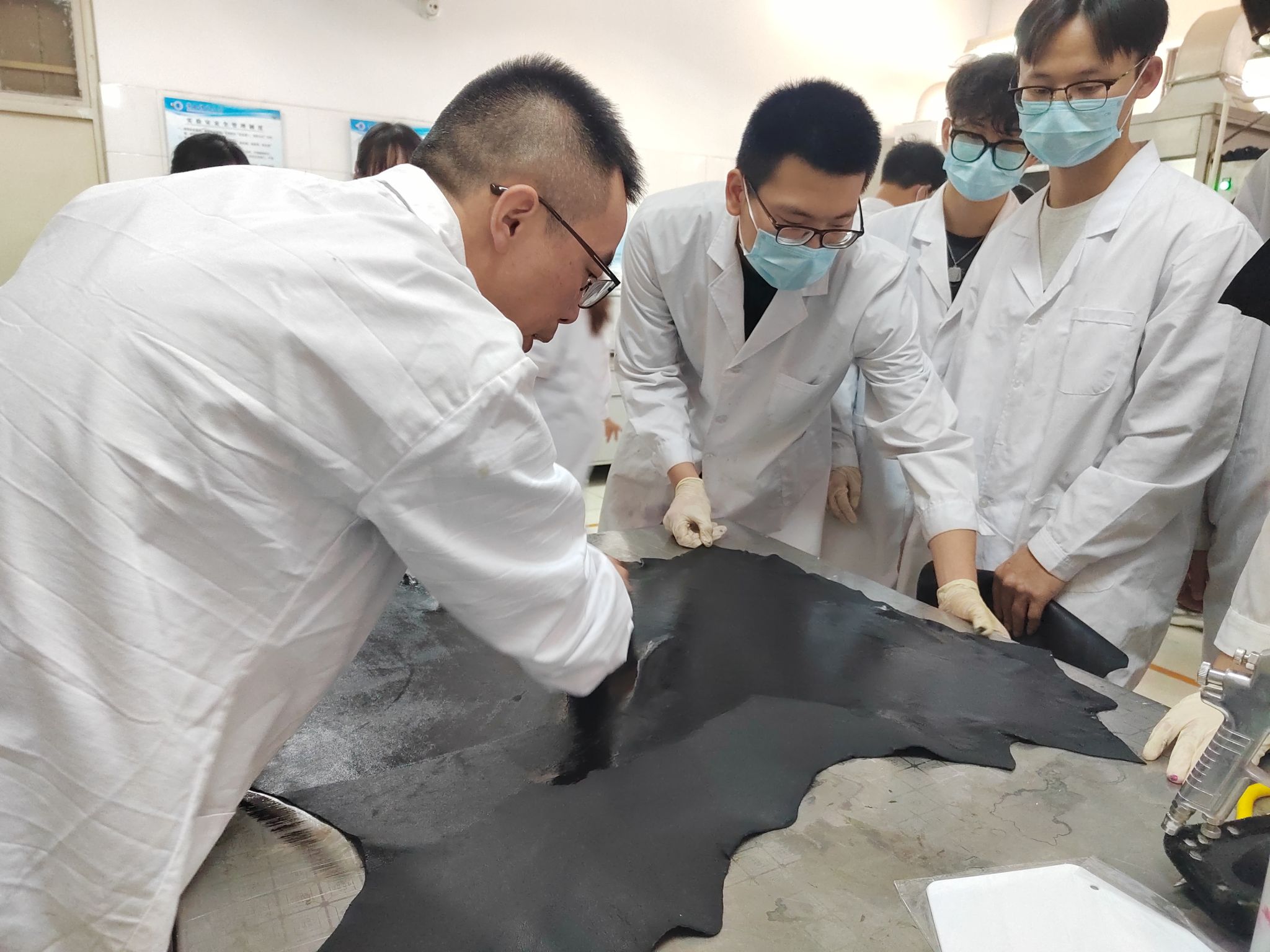 交流期間,夏敏、涂剛和費(fèi)必江給輕化工程專業(yè)(皮革)師生做了主題報告, 分別為斯塔爾公司介紹、皮革市場最新發(fā)展以及市場流行皮革產(chǎn)品涂飾方案。隨 后,在學(xué)院專業(yè)實(shí)驗(yàn)室,夏經(jīng)理、涂經(jīng)理、費(fèi)經(jīng)理手把手地指導(dǎo)學(xué)生完成扎染、 油蠟、納帕三種皮革涂飾效應(yīng)的制作。在整個實(shí)驗(yàn)過程中,學(xué)生積極思考、參與 度極高,把自己的奇思妙想融入實(shí)驗(yàn)中,深度體驗(yàn)并踐行了皮革涂飾“技術(shù)與藝 術(shù)融合”的理念。