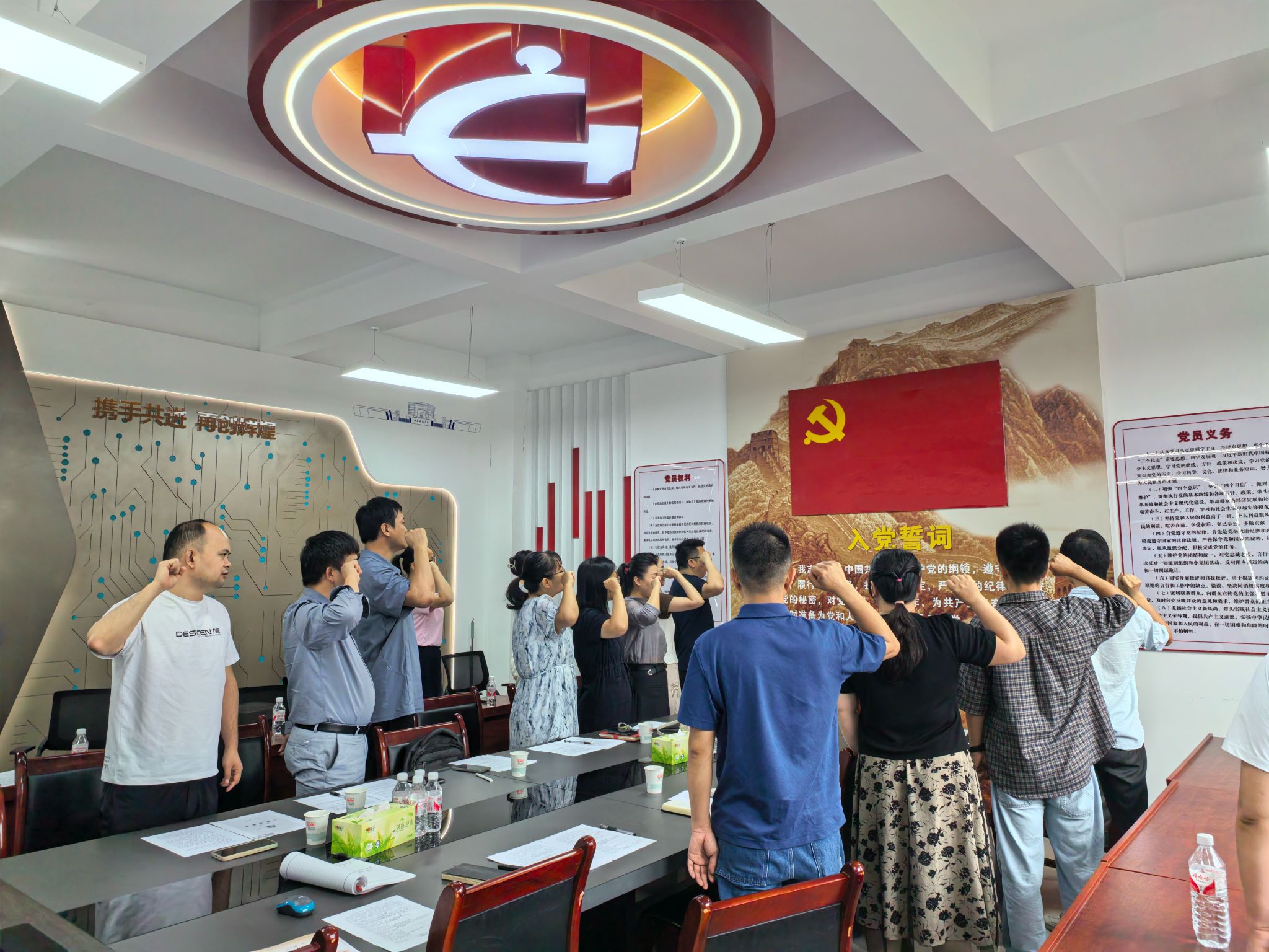 莊嚴(yán)宣誓啟新程。入黨宣誓儀式上,各黨支部為新黨員鄭重頒發(fā)“新黨員入黨紀(jì)念卡”??ㄆ懣讨袷サ娜朦h誓詞,既是黨員政治生命的珍貴印記,更承載著終身踐行初心使命的莊嚴(yán)承諾。新老黨員面向鮮紅黨旗,高舉右拳,以鏗鏘誓言叩問初心,以赤誠之心淬煉黨性。這莊嚴(yán)時(shí)刻,激勵(lì)著全體黨員牢記宗旨,堅(jiān)守信仰,砥礪前行。