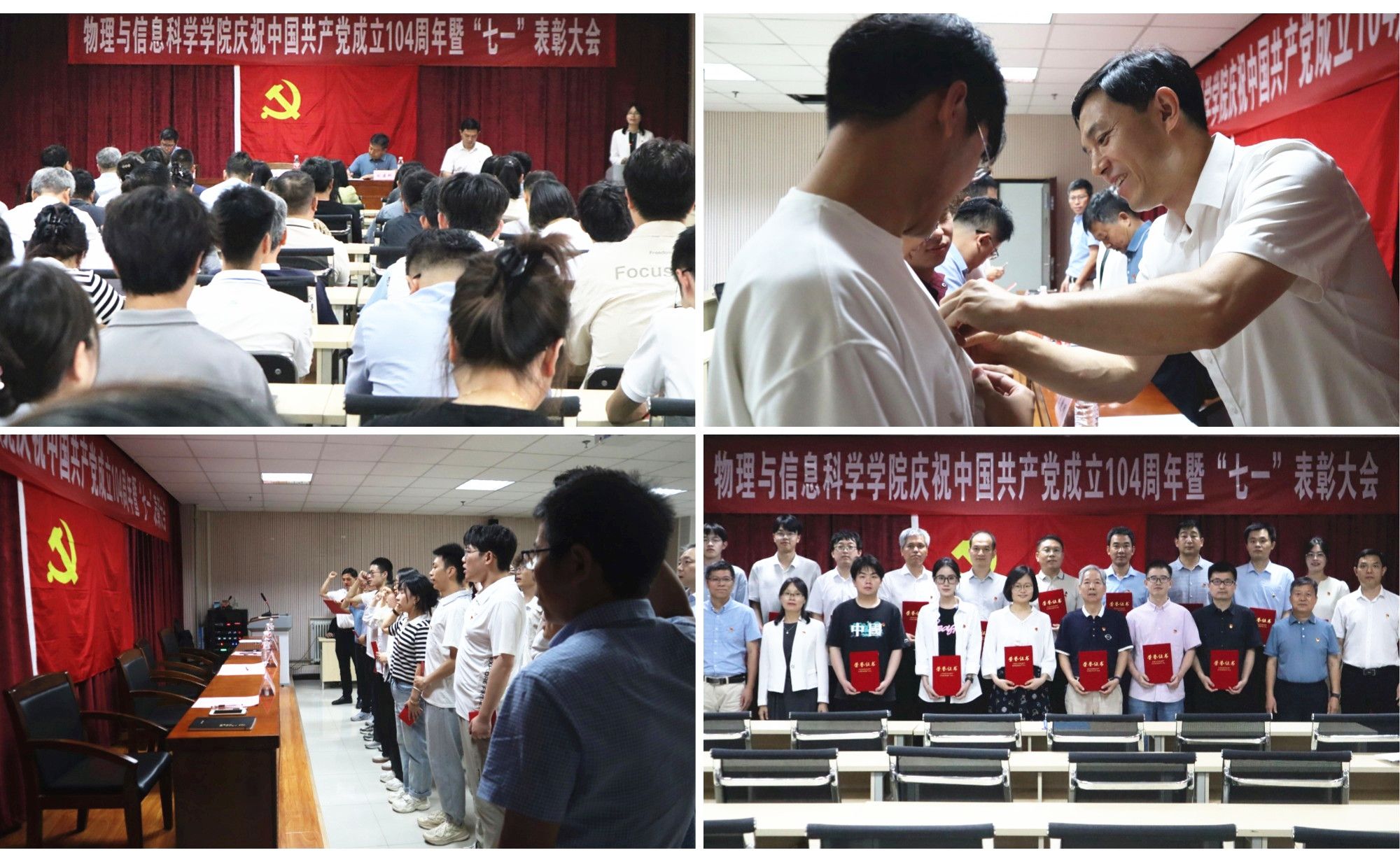 為慶祝中國共產(chǎn)黨成立104周年,表彰先進,樹立典型,物理學院黨委于6月30日舉行慶祝中國共產(chǎn)黨成立104周年暨“七一”表彰大會。學院黨委委員、全體黨員、入黨積極分子代表參加會議,會議由學院黨委副書記王曉明主持。
