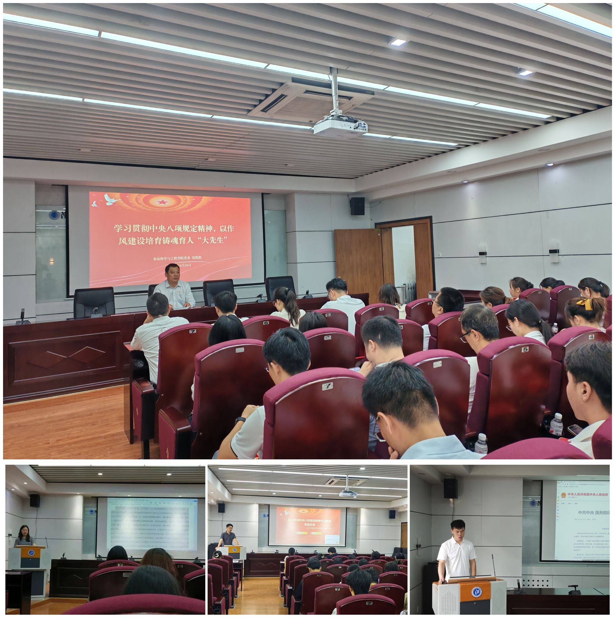七一前夕,學院領導班子和各師生黨支部書記分別講授深入貫徹中央八項規(guī)定精神學習教育專題黨課。學院黨委書記張凱凱以《深入學習貫徹中央八項規(guī)定精神,以作風建設培育鑄魂育人“大先生”》為題進行授課,系統(tǒng)闡釋了教育領域踐行中央八項規(guī)定精神的重要意義。學院黨委委員、各師生黨支部書記圍繞深入貫徹中央八項規(guī)定精神學習教育心得體會,結合分管領域工作及支部特點講授專題黨課,持續(xù)推動中央八項規(guī)定精神在食品學院落地見效.