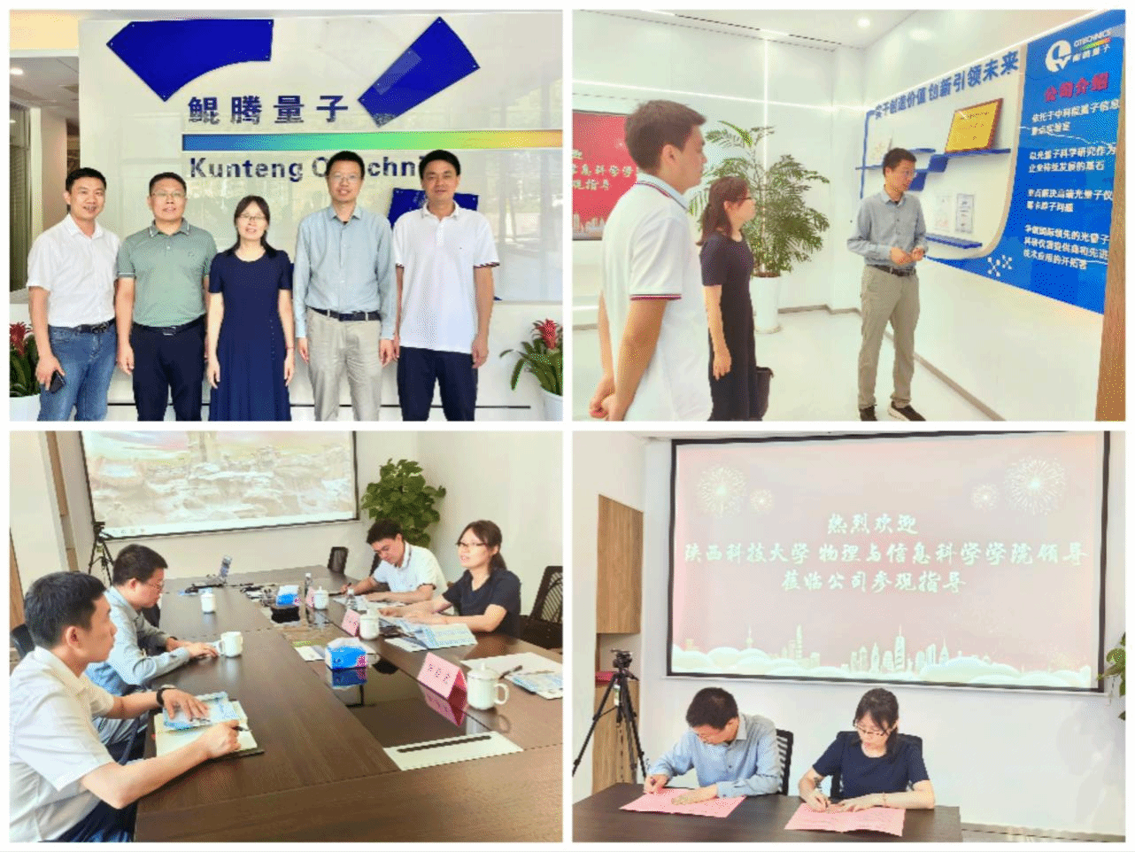 7月2日下午,陳源梅一行來到安徽鯤騰量子科技有限公司實地參觀調研。周志遠董事長首先就公司研究領域、核心技術產品、企業(yè)文化等方面做了簡要介紹。隨后,雙方圍繞畢業(yè)生實習就業(yè)、量子信息專業(yè)課程體系創(chuàng)新、實驗室儀器優(yōu)化提升等進行深入交流。會后,雙方代表簽署了戰(zhàn)略合作協(xié)議,進一步推動了量子領域校企合作向產業(yè)化縱深發(fā)展。