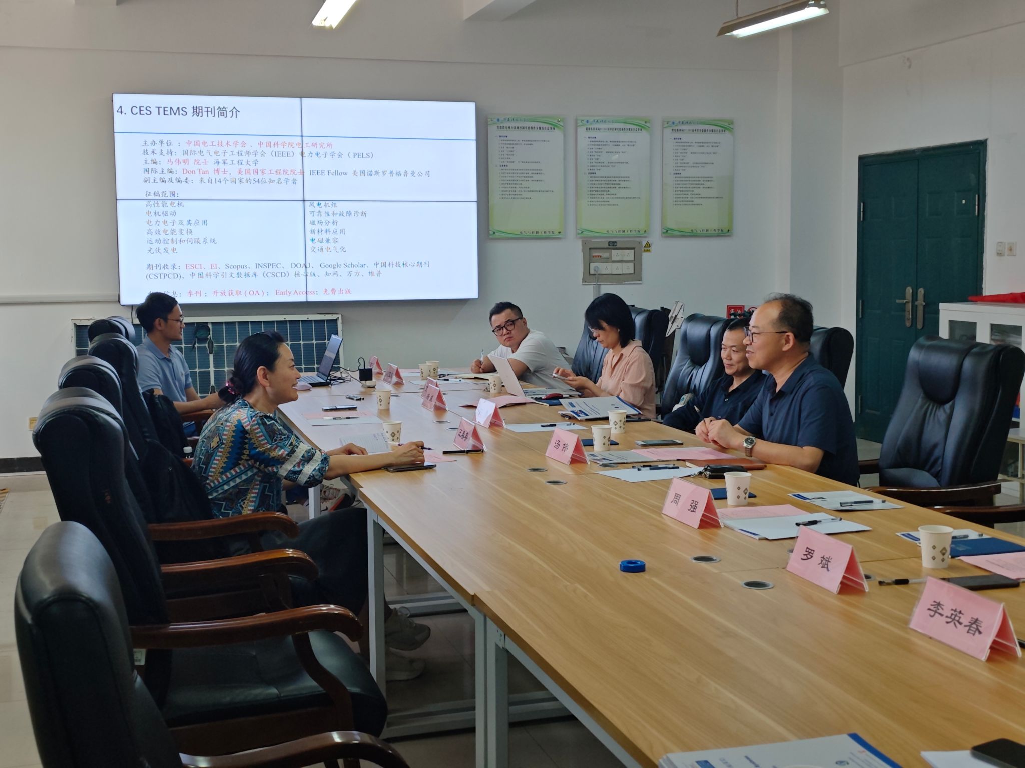 湯偉詳細(xì)介紹學(xué)院發(fā)展歷程、學(xué)科布局及科研特色,重點展示我校在電氣工程、控制科學(xué)與工程領(lǐng)域的突出成果,包括“輕工業(yè)清潔生產(chǎn)自動化與信息化重點實驗室”等省部級平臺建設(shè)。石勇教授等教師介紹我校在電力電子變換器智能控制、無線電能傳輸技術(shù)等方面的研究進(jìn)展。王春睿主任充分肯定學(xué)院的科研實力與學(xué)科特色,并系統(tǒng)闡述了CES TEMS的期刊定位、國際影響力(ESCI/EI收錄)及發(fā)展目標(biāo),期待雙方在學(xué)術(shù)傳播、青年學(xué)者培養(yǎng)及專題組稿方面深化合作。與會教師圍繞期刊投稿、學(xué)科熱點及產(chǎn)學(xué)研融合等議題進(jìn)行深入探討。