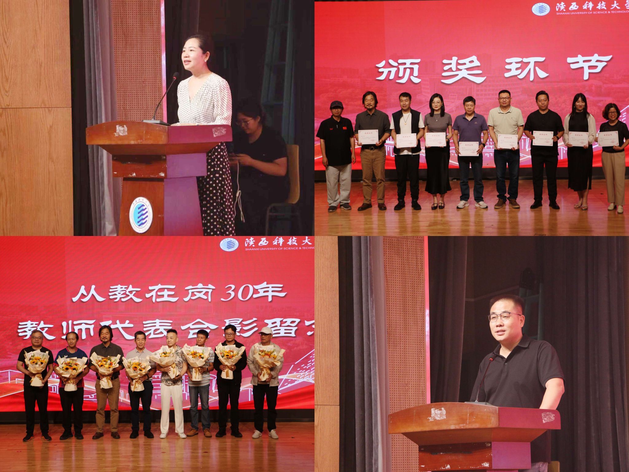 大會在學(xué)院朗誦主持隊(duì)的《黃河頌》中拉開帷幕。田少寧宣讀了學(xué)院2025年優(yōu)秀教師及先進(jìn)集體表彰決定,并為獲獎集體和個人頒發(fā)證書與紀(jì)念品。表彰覆蓋科研立項(xiàng)、學(xué)術(shù)會議、教育教學(xué)、研究生培養(yǎng)、國際交流、人才項(xiàng)目等領(lǐng)域,充分肯定了教師們在各自崗位上的突出貢獻(xiàn)。西部設(shè)計(jì)黨支部、學(xué)生工作辦公室、服裝與服飾設(shè)計(jì)教研室榮獲“先進(jìn)集體”稱號,大會同時(shí)舉行了“從教在崗三十周年教師代表合影留念”儀式。獲獎教師代表許小周分享了教育教學(xué)經(jīng)驗(yàn)與感悟,表達(dá)了扎根講臺、潛心育人的堅(jiān)定信念。