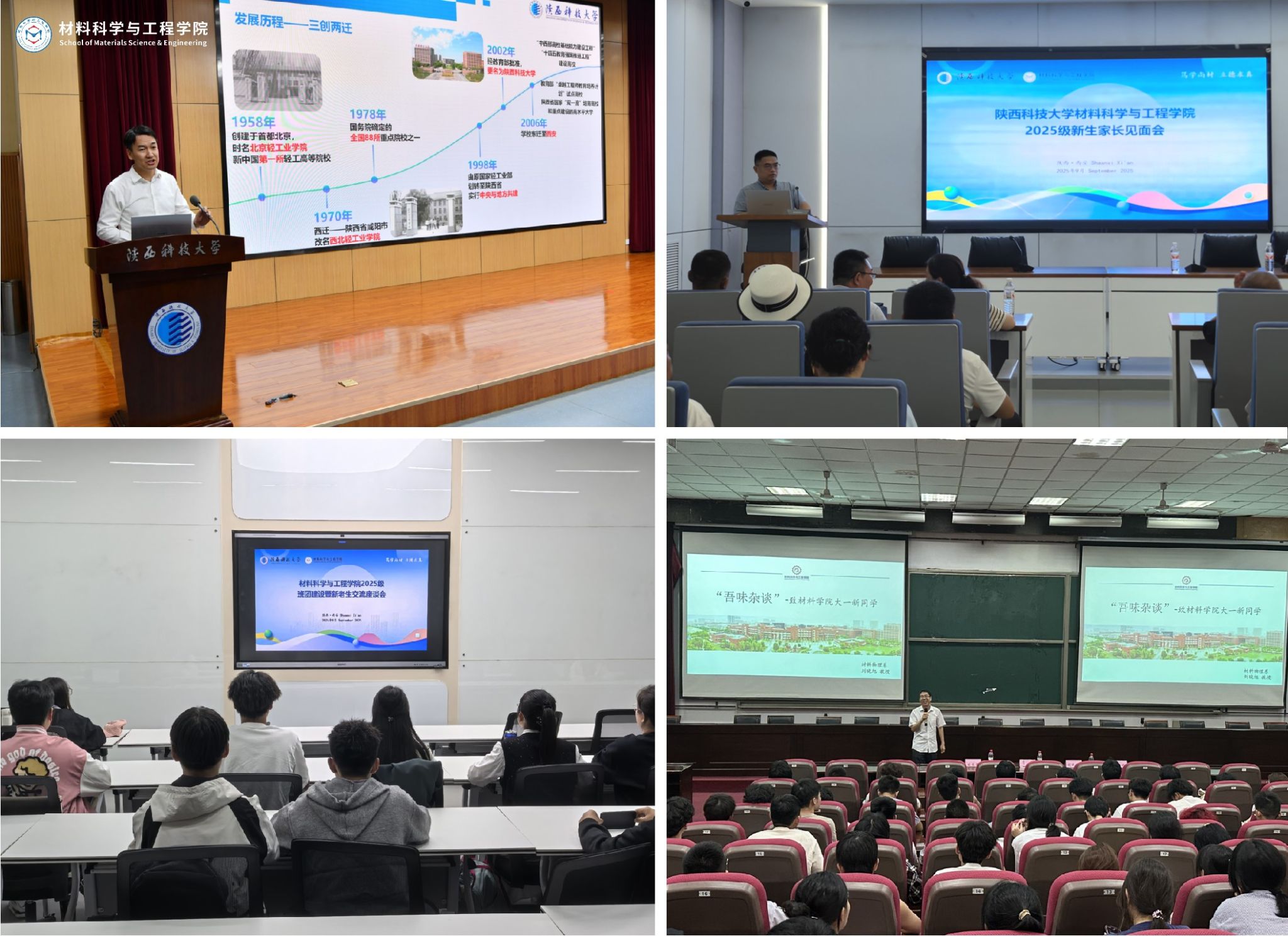 深化思想引領(lǐng),凝黨團(tuán)班組織合力,培育優(yōu)良學(xué)風(fēng)。迎新期間,我院開展“材料學(xué)院新生家長見面會(huì)”,累計(jì)接待百余名新生及家長,解答其在學(xué)業(yè)、生活等方面問題;以材料校友會(huì)成立大會(huì)為契機(jī),為全體新生開展“開學(xué)第一課”入學(xué)教育大會(huì),院長楊海波從學(xué)院的歷史沿革、校園生活等多方面進(jìn)行介紹,鼓勵(lì)同學(xué)們緊抓時(shí)代機(jī)遇、提高認(rèn)知上限,做“三創(chuàng)兩遷”精神新傳人;各系主任、班主任組織開展新生見面會(huì)與專業(yè)宣講專題講座,使新生提前了解專業(yè)知識(shí)內(nèi)容,形成專業(yè)基本認(rèn)知;2025級(jí)輔導(dǎo)員李恩帶領(lǐng)全體新生集中學(xué)習(xí)《陜西科技大學(xué)章程》與《大學(xué)導(dǎo)航》詳情內(nèi)容,幫助新生了解學(xué)校基本規(guī)定和學(xué)院管理制度;開展“班委座談會(huì)暨班團(tuán)建設(shè)交流會(huì)”,邀請(qǐng)高年級(jí)優(yōu)秀學(xué)生代表與新生進(jìn)行經(jīng)驗(yàn)交流,為打造優(yōu)良學(xué)風(fēng)、班團(tuán)一體化建設(shè)夯實(shí)基礎(chǔ)。
