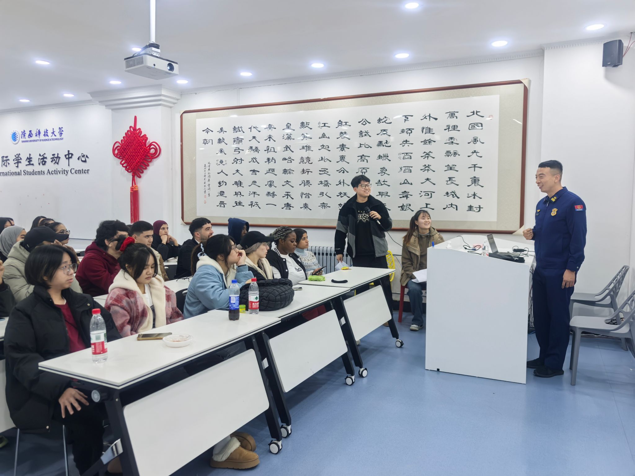 為營造安全穩(wěn)定的校園居住環(huán)境,強(qiáng)化留學(xué)生消防安全意識,11月14日,國際處聯(lián)合保衛(wèi)處在國際教育公寓樓內(nèi)開展消防疏散演練,并邀請西安消防救援隊(duì)伍站長助理康海剛主講消防安全專題講座。
