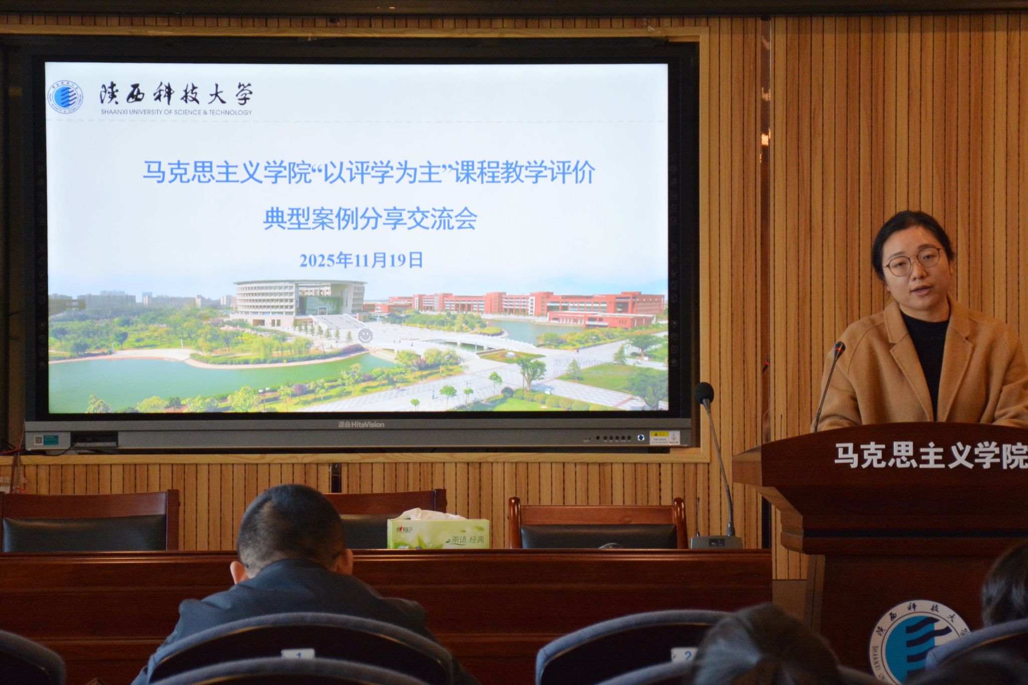 為深入落實“以評學(xué)為主”的教學(xué)質(zhì)量評價體系改革,11月19日上午,馬克思主義學(xué)院在人文樓1014報告廳開展“以評學(xué)為主”的課程教學(xué)評價典型案例經(jīng)驗分享會。本次交流會由我院獲得校級“以評學(xué)為主”教學(xué)評價典型案例獎項的郭丹老師進行匯報分享,學(xué)院全體教師參加。