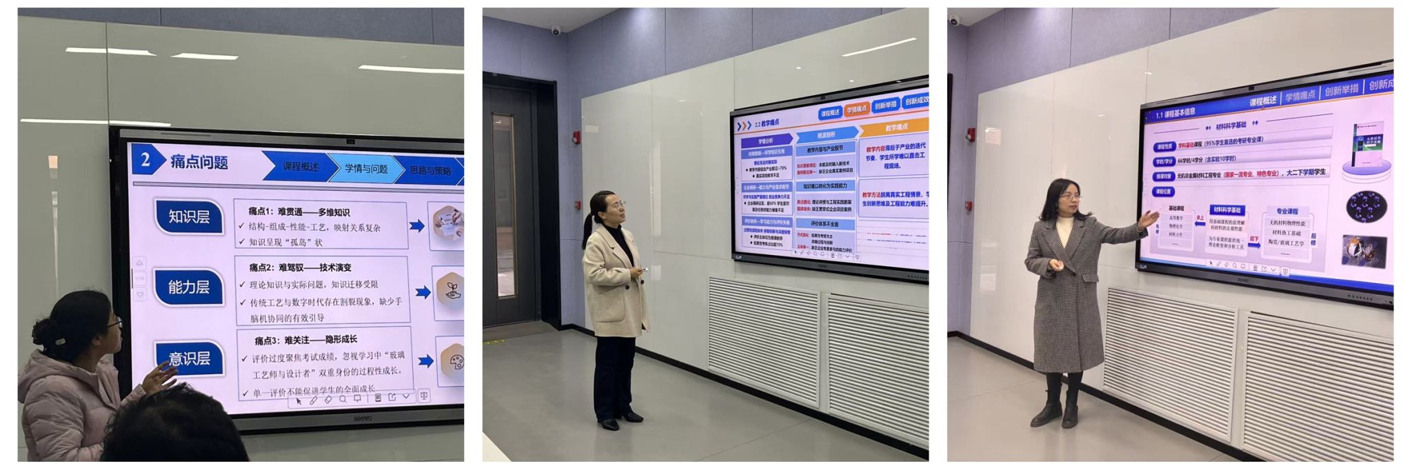 院長楊海波強調(diào)課堂創(chuàng)新是提升教學(xué)質(zhì)量的核心抓手,希望通過專家把脈問診,幫助選手破解備賽痛點、提煉教學(xué)亮點,在賽事中展現(xiàn)材料學(xué)科教學(xué)特色與教師風(fēng)采。隨后,參賽選手依次進行教學(xué)創(chuàng)新報告展示與模擬課堂試講,圍繞材料類課程的創(chuàng)新理念、教學(xué)設(shè)計、技術(shù)融合及思政融入等內(nèi)容展開演示,充分展現(xiàn)了各自在課程改革中的探索與實踐。