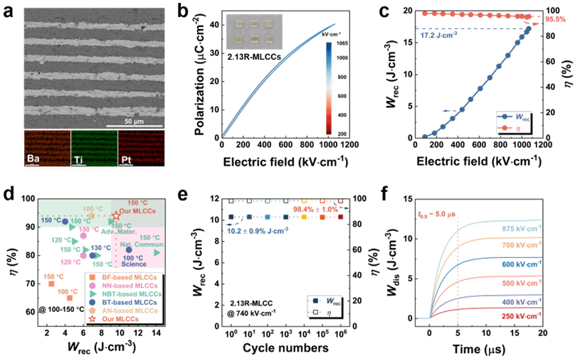隨著5G基站、航天器載荷等高頻高功率電子系統(tǒng)的快速發(fā)展,對(duì)多層陶瓷電容器(MLCCs)提出了更高的性能要求,尤其是在體積功率密度、儲(chǔ)能效率與熱穩(wěn)定性方面。傳統(tǒng)鐵電陶瓷材料如BaTiO3雖具備較高極化強(qiáng)度,但其疇翻轉(zhuǎn)滯后損耗大、擊穿場(chǎng)強(qiáng)有限,導(dǎo)致實(shí)際儲(chǔ)能密度遠(yuǎn)低于理論值。
