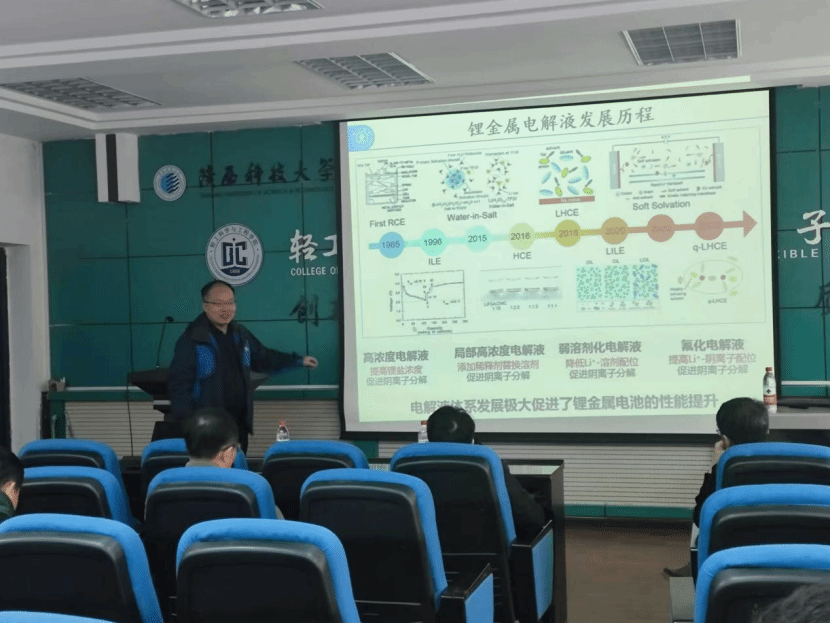 宋江選教授的學(xué)術(shù)報(bào)告展示了他在高比能鋰金屬電池設(shè)計(jì)與應(yīng)用探索方面的研究進(jìn)展,對(duì)我校師生今后研究方向的拓展有很好的啟發(fā)性。報(bào)告最后,宋江選教授還與參會(huì)師生就報(bào)告內(nèi)容進(jìn)行了深入的討論和交流,并對(duì)高比能鋰金屬電池設(shè)計(jì)與應(yīng)用方向提出了新的見解。