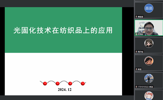 陳坤林副教授介紹了光固化技術(shù)的應(yīng)用背景,并圍繞其基本原理、獨(dú)特技術(shù)特點(diǎn)、在織物整理與印花領(lǐng)域中的創(chuàng)新應(yīng)用,以及對未來發(fā)展趨勢的深刻洞察,展開了全面細(xì)致的講解。他強(qiáng)調(diào),光固化技術(shù)憑借其高效生產(chǎn)流程、顯著的成本效益、廣泛的適用范圍、卓越的安全節(jié)能特性及“綠色環(huán)?!钡暮诵睦砟?,在我國新材料研發(fā)戰(zhàn)略中備受關(guān)注。然而,光固化技術(shù)在追求有效固化、深層固化及提升固化效率等核心環(huán)節(jié)上仍面臨挑戰(zhàn),這些挑戰(zhàn)在一定程度上限制了其更廣泛的應(yīng)用與發(fā)展。因此,他帶領(lǐng)團(tuán)隊(duì)從光固化織物印花與整理兩大維度入手,探索UV光固化及可見光光固化技術(shù)在不同涂料印花領(lǐng)域的可行路徑與適用場景。他還進(jìn)一步展望未來,隨著科學(xué)技術(shù)的持續(xù)進(jìn)步,輔助化學(xué)添加劑的應(yīng)用將不斷拓展,為光固化技術(shù)注入新的活力。光固化技術(shù)推動了各行各業(yè)產(chǎn)品質(zhì)量提升,為經(jīng)濟(jì)社會的可持續(xù)發(fā)展貢獻(xiàn)重要力量。
