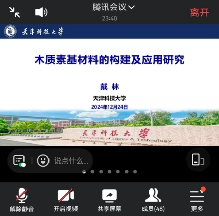 12月26日,應(yīng)輕工科學(xué)與工程學(xué)院(柔性電子學(xué)院)和科技處、前沿院邀請(qǐng),天津科技大學(xué)戴林教授做客我?!扒把乜茖W(xué)報(bào)告”,并作了題為“木質(zhì)素基材料的構(gòu)建及應(yīng)用研究”的線(xiàn)上學(xué)術(shù)報(bào)告。本次前沿科學(xué)報(bào)告由輕工學(xué)院黨旭崗副教授主持,學(xué)院相關(guān)教師和全體研究生參加了本次報(bào)告會(huì)。